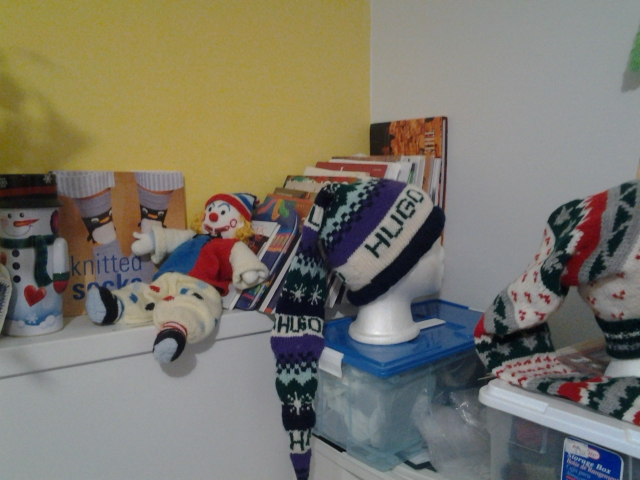 | Encore des livres de tricot, derrière d’anciennes tuques de mes fils |