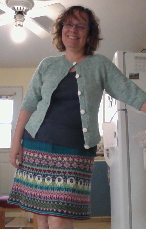 Commençons par ma nouvelle veste en top-down (de haut en bas) qui va avec ma nouvelle jupe ET ma robe d’été.