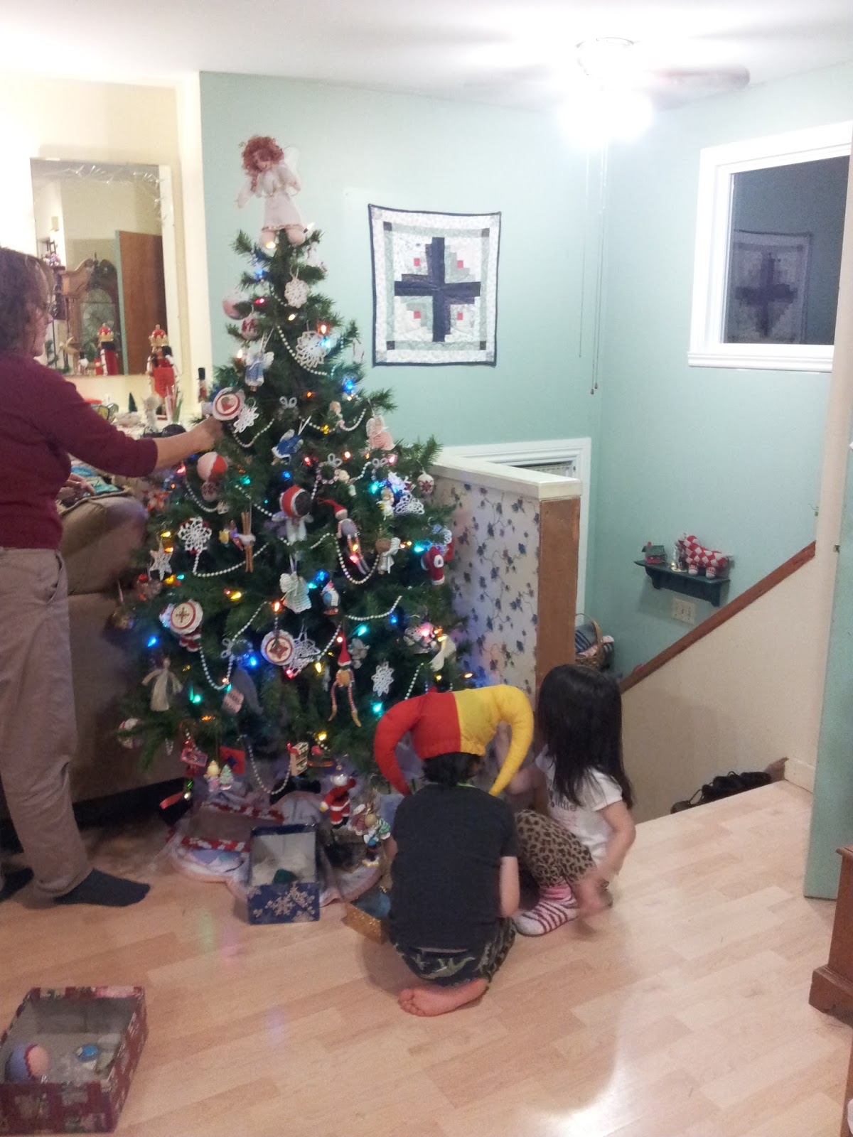 Les cadeaux ont été réduits pas mal dans les dernières années, et cette année, je me suis appliquée à diminuer la quantité de nourriture préparée à l’avance (quand tu en manges pendant 2 mois une année, tu te dis qu’il faut changer ça un peu…aussi). Alors, il y a moins de pression qu’il y en a déjà eu.