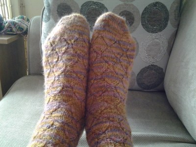 Ensuite, une série de 4 cours sur les bas de la pointe vers le haut. Ils se donneront à partir du 15 février. Il y aura quelques options de points sur les bas pour ceux/celles qui le désirent.