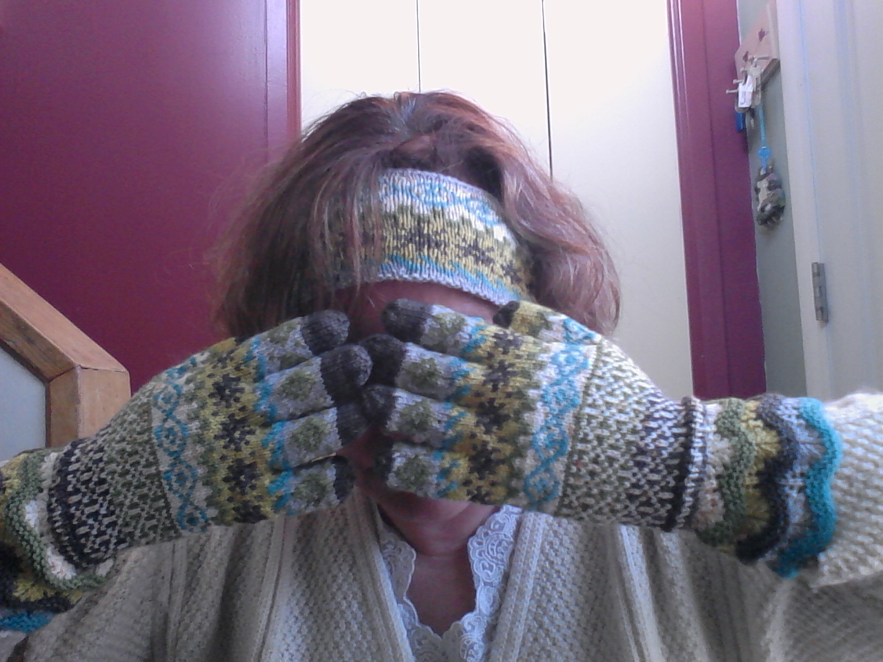 | Un bandeau pour aller avec les gants faits avec le kit de minis fourni par Mot de Laine. |
