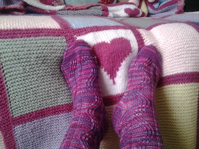 | Une autre paire commencés par la pointe, tricotés avec la laine de Bobinette Tricot (de Limoilou). |
