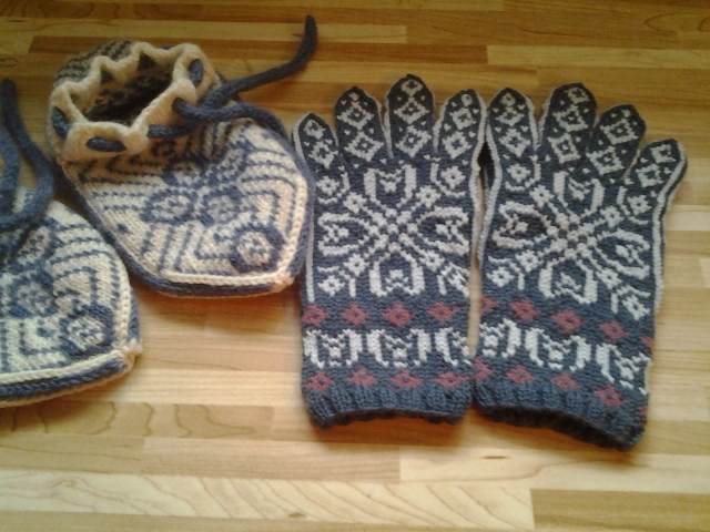 | Patron des gants: Symétrie no 1, les chaussons, eux, sont à tester. |