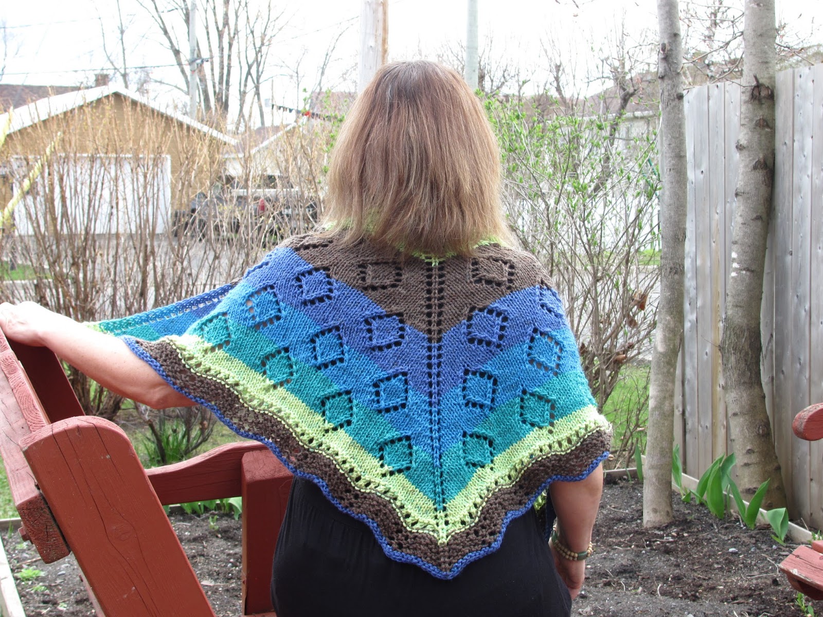 Voilà! Je viens de sortir un nouveau patron de châle: Premier envol. Vous avez la version châle et la version « fichu » qui n’est qu’une question de grosseur de laine et d’aiguilles. Il peut être tricoté avec des 6 mm et de la laine grosseur no 4, ou avec des 4 mm, et de la laine grosseur no 1.