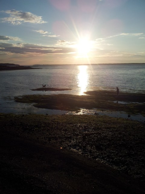 Arrivés sur le minuscule quai de l’île, un sympathique jeune homme nous a dit « bienvenue sur l’Île ». Ce fût l’essentiel-non l’entièreté de son discours de bienvenue. Nous ne savions pas trop où aller. Une chance que nous nous avions pris un plan avant de partir. Il y a des genres de circuits, mais ce ne sont pas de « jolis-sentiers-bordés-de-fleurs-où-de-jolis-arc-en-ciels-de-bonheur-nous-fraient-un-chemin-à-travers-un-tapis-de-mousse » (Bon. La dernière phrase est LÉGÈREMENT exagérée, j’en conviens). Il y a bien quelques sentiers dans les bois, mais ils sont faciles à manquer. Et c’est ce qui nous est arrivé. Nous nous sommes donc retrouvés à marcher sur une section de plage pleine de rochers et de dénivellations. Crime que le quai (très petit d’ailleurs) semblait s’éloigner de nous vers la fin! Disons qu’on a bien ri…de nous-même.