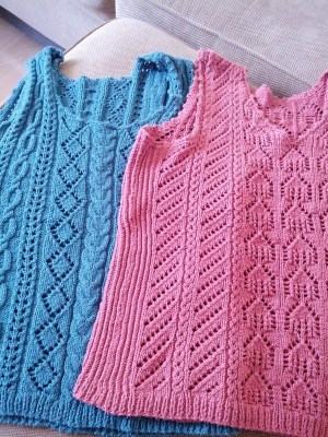 Puis, en 2011 et 2012, je m’étais amusée à faire des camisoles constituées de points divers, entre autres de points ajourés, pour porter l’été.