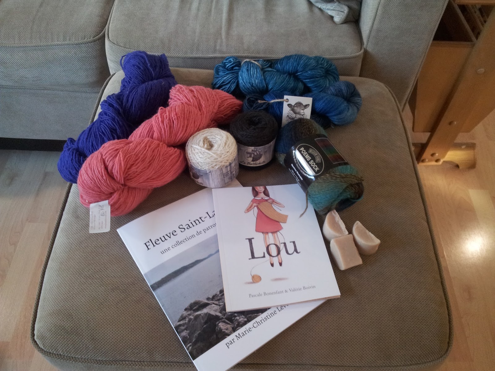 J’ai bien entendu magasiné (ouf, ma réserve de laine est pas mal à son maximum).