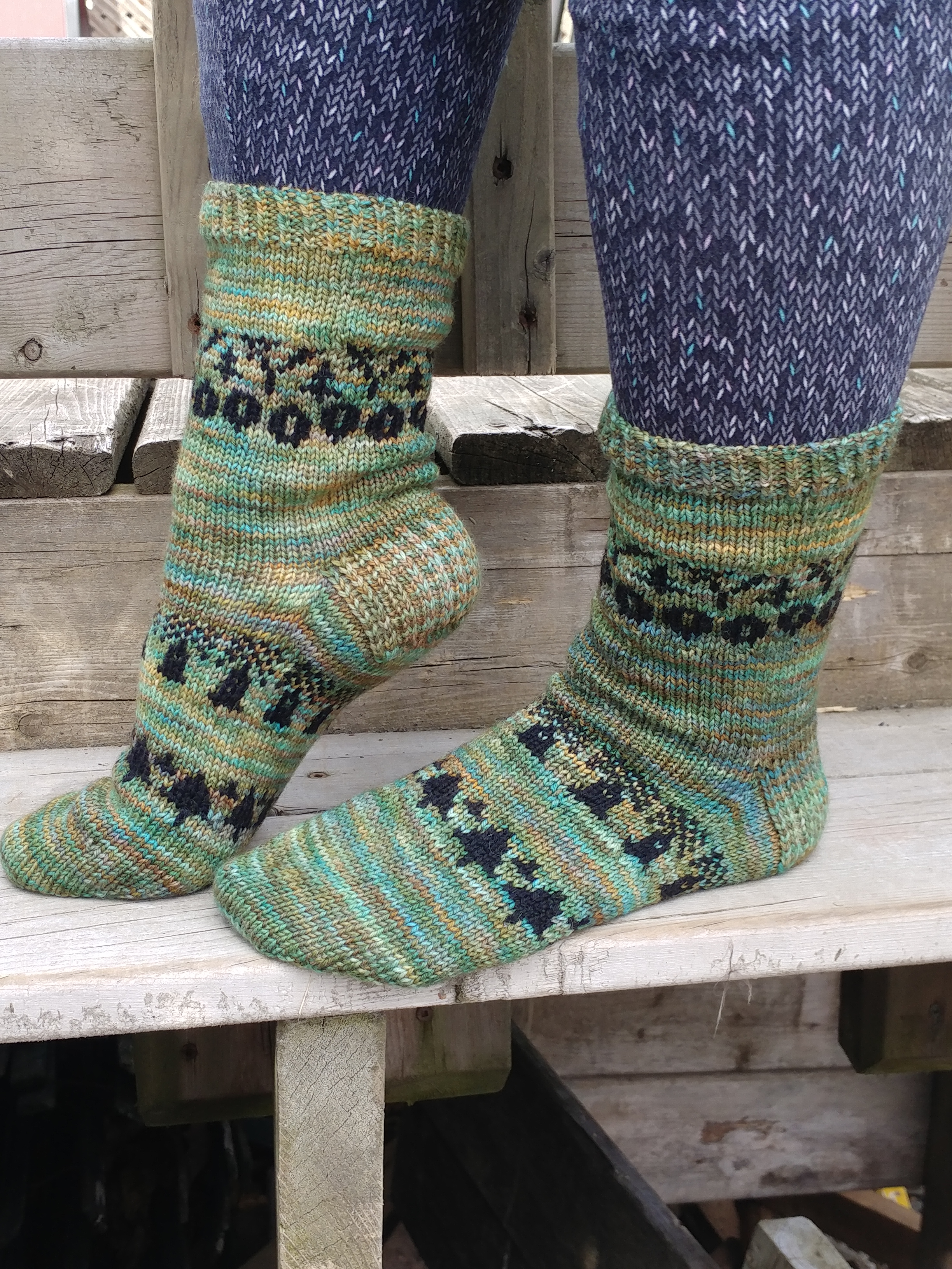 Publication d’un nouveau patron le 22 mai. Sylvestre : Des bas avec un thème de bain de forêt (aussi, comme la couverture Shinrin Yoku : on est dans le vert!). La journée de la publication d’un patron, tu en travailles un coup! Publication du patron sur ravelry, publication sur ma page facebook, publication sur au moins 3 groupes facebook, rédaction d’un article sur mon blog (qui a décidé de changer mon interface au moment où je me suis mis à mon blog pour écrire mon article= + une heure de taponnage pour tenter de comprendre les nouvelles choses dudit blog), publication sur instagram et suivi des différents commentaires ou questions sur toutes ces plateformes! Ah, et oui, la veille tu travailles à tout-tout réviser pour être sûre que tout est correct (mais on finit toujours par laisser des erreurs quand même). Et d’ailleurs avant tout ça il y a eu les tests et l’écriture du patron. Le tricoter ça compte pas : c’est le bout l’fun! Et le jour après la publication, le suivi continu, en plus d’une possible 2ème publication sur ma page et sur instagram, pour battre le fer quand il est chaud! Tout ça pour dire que, même si je peux publier quand je veux, je choisis le mieux possible la journée. Pas la fin de semaine en tout cas!