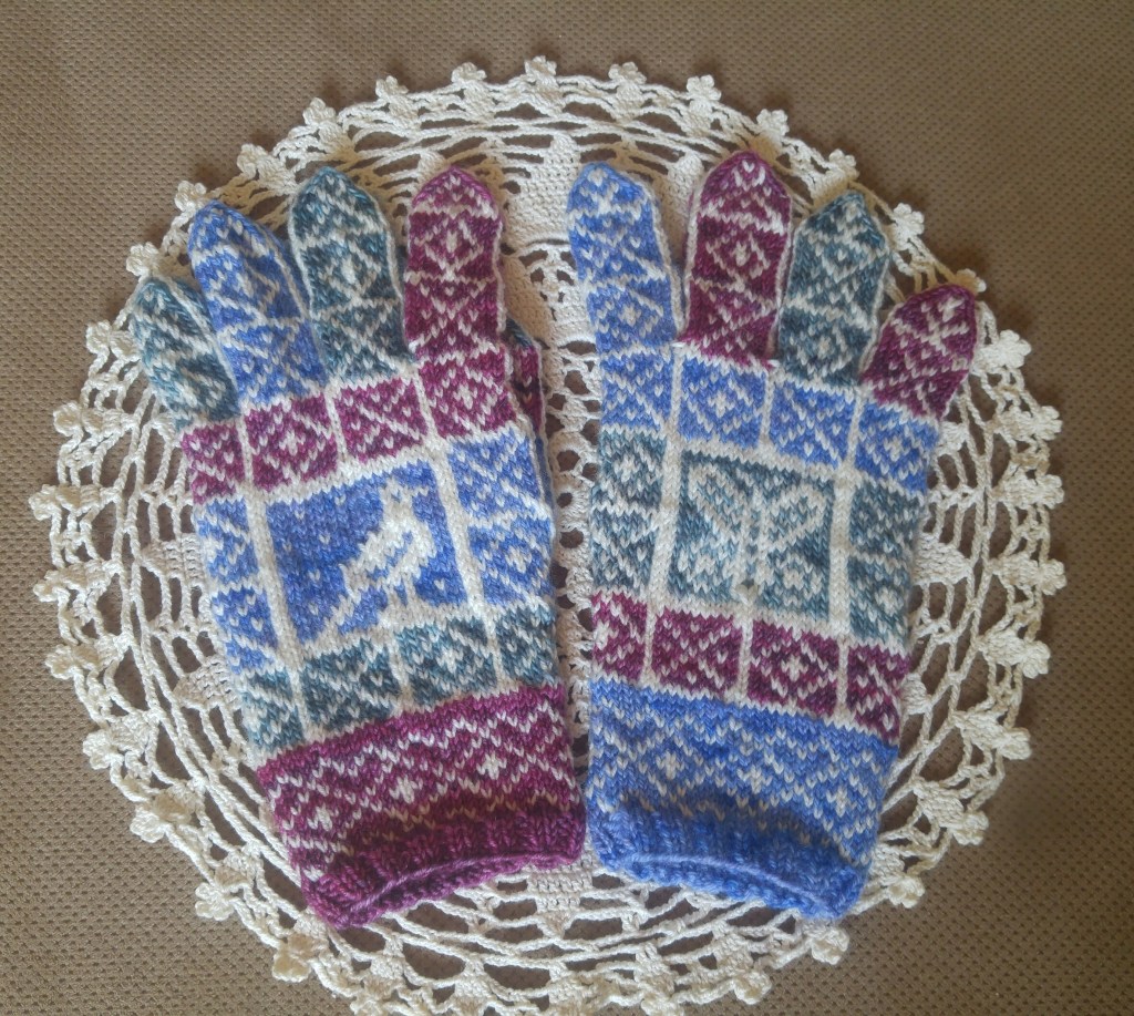 Je termine avec mes gants de mai. J’essaie de garder le défi d’en faire une paire par mois, avec de beaux restes de laine. Quand je me pointe à une exposition (environ une fois/3 ans), c’est ce que je vend le plus