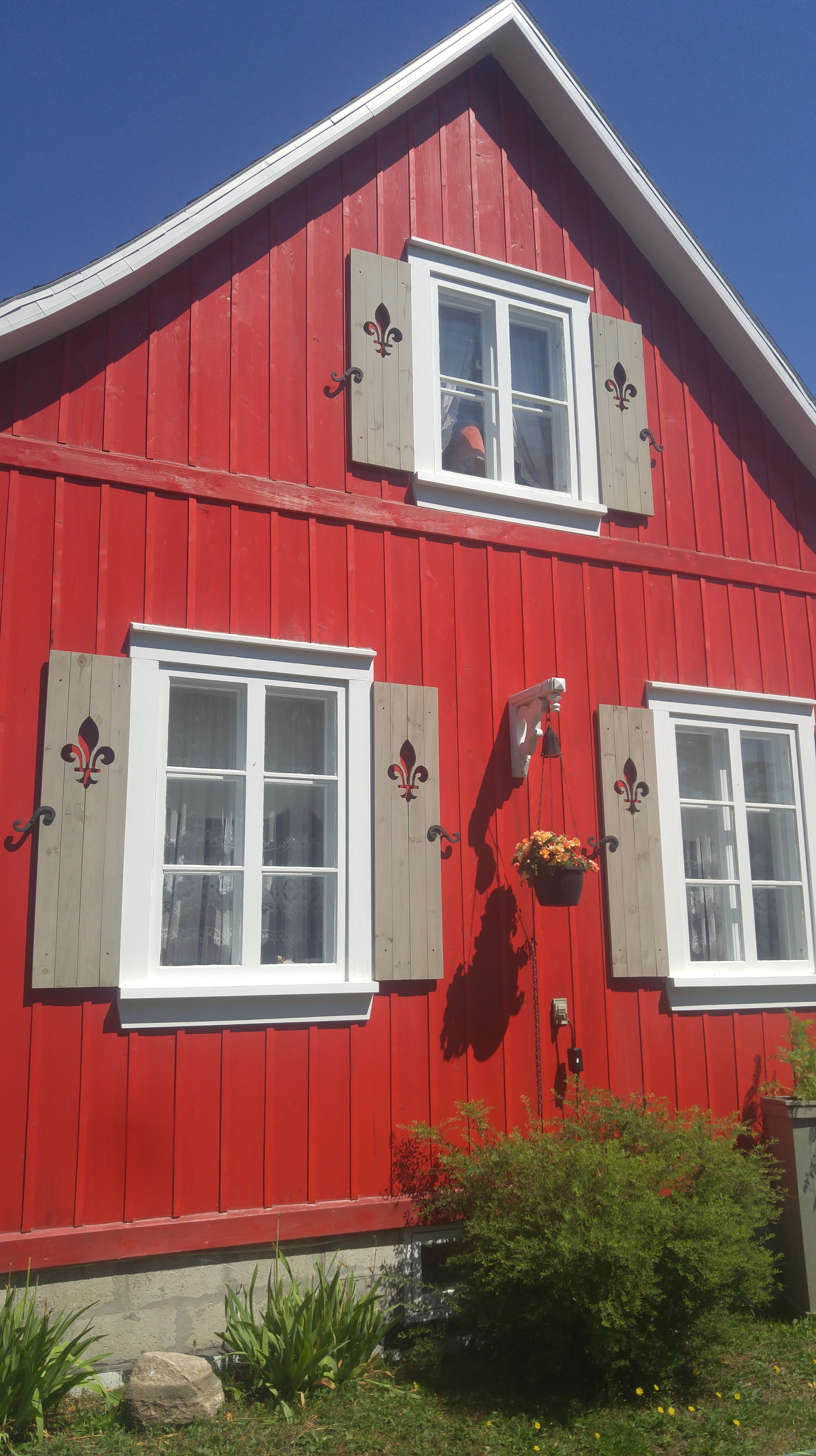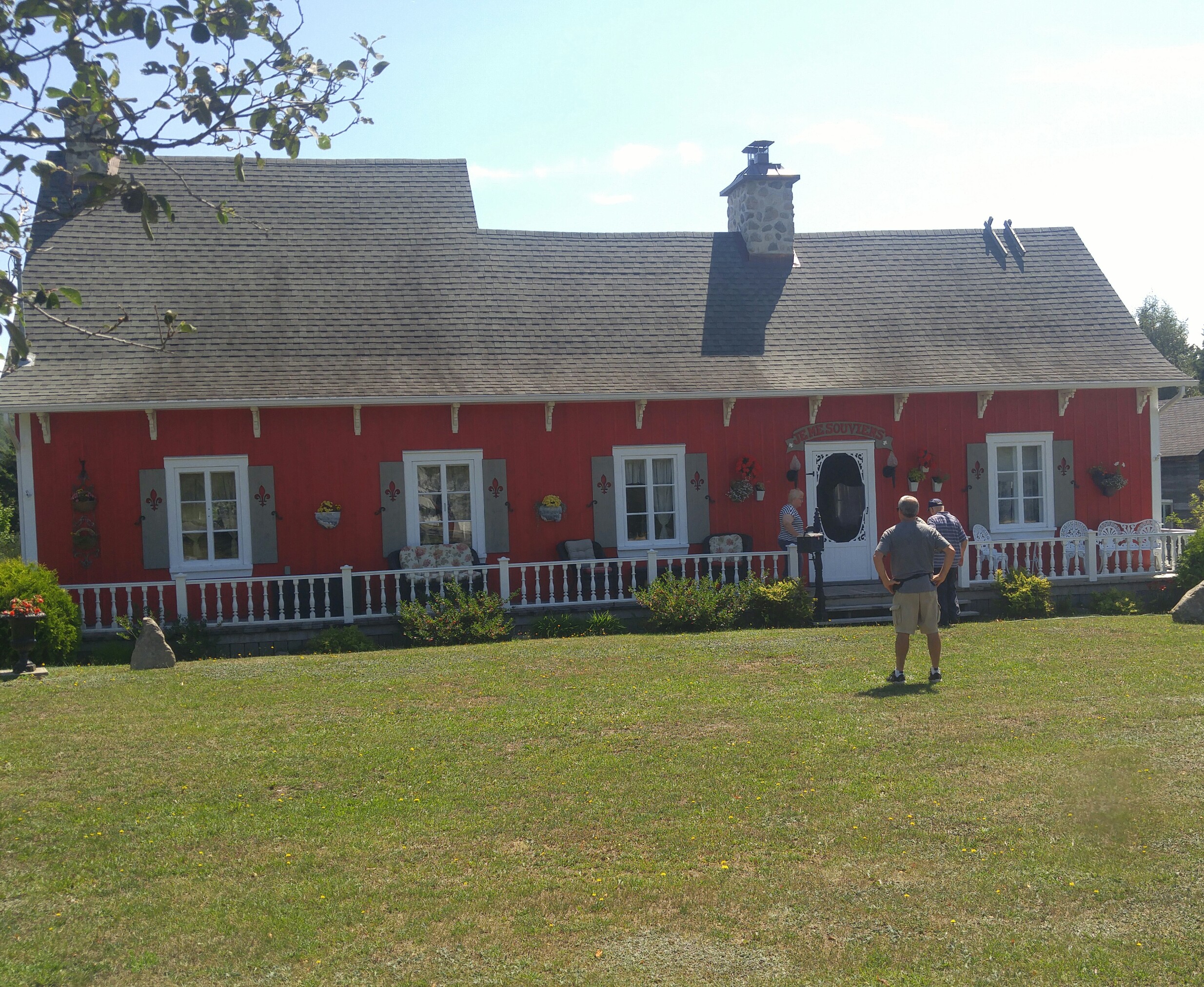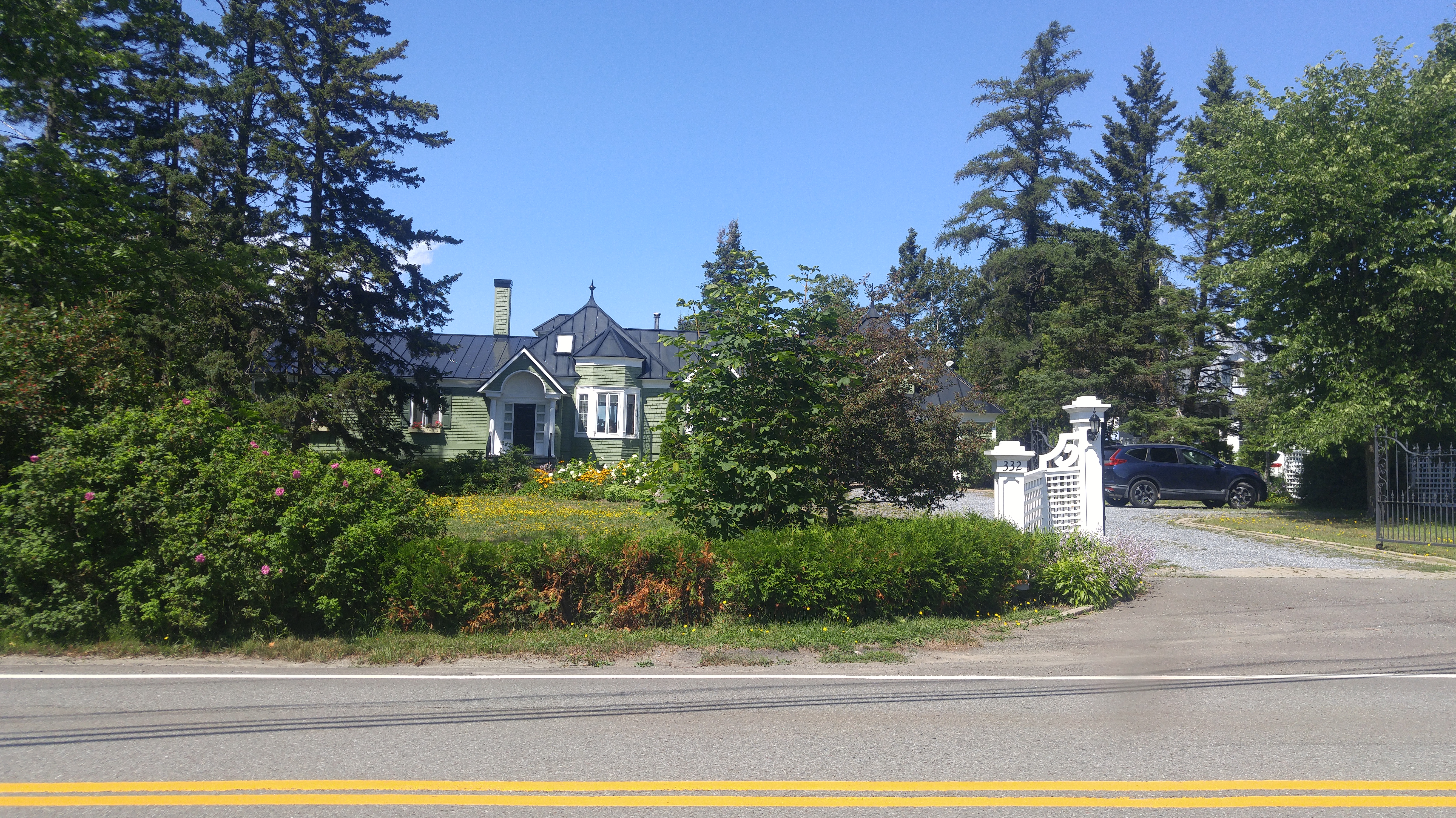 Et pour terminer, je vous parle de mes balades. Notre chalet se trouvait à être vis-à-vis à peu près la moitié du village, pas DANS le village, mais sur la 132 appelée rue (ou route je ne sais plus) de la Montagne. Toute seule, j’ai fait une boucle du chalet vers l’est complètement pour revenir par le village au chalet: 6 km. Et j’ai fait la boucle ouest, chalet-132-village-chalet: 8 km. Et la dernière journée, Yvan et moi avons fait Portage-Rivière-du-Loup sur la 132, avec les anciennes maisons terriblement riches: environ 7 km. Les images sont de la dernière balade. Et nous avons rencontrés les propriétaires de la dernière maison rouge.