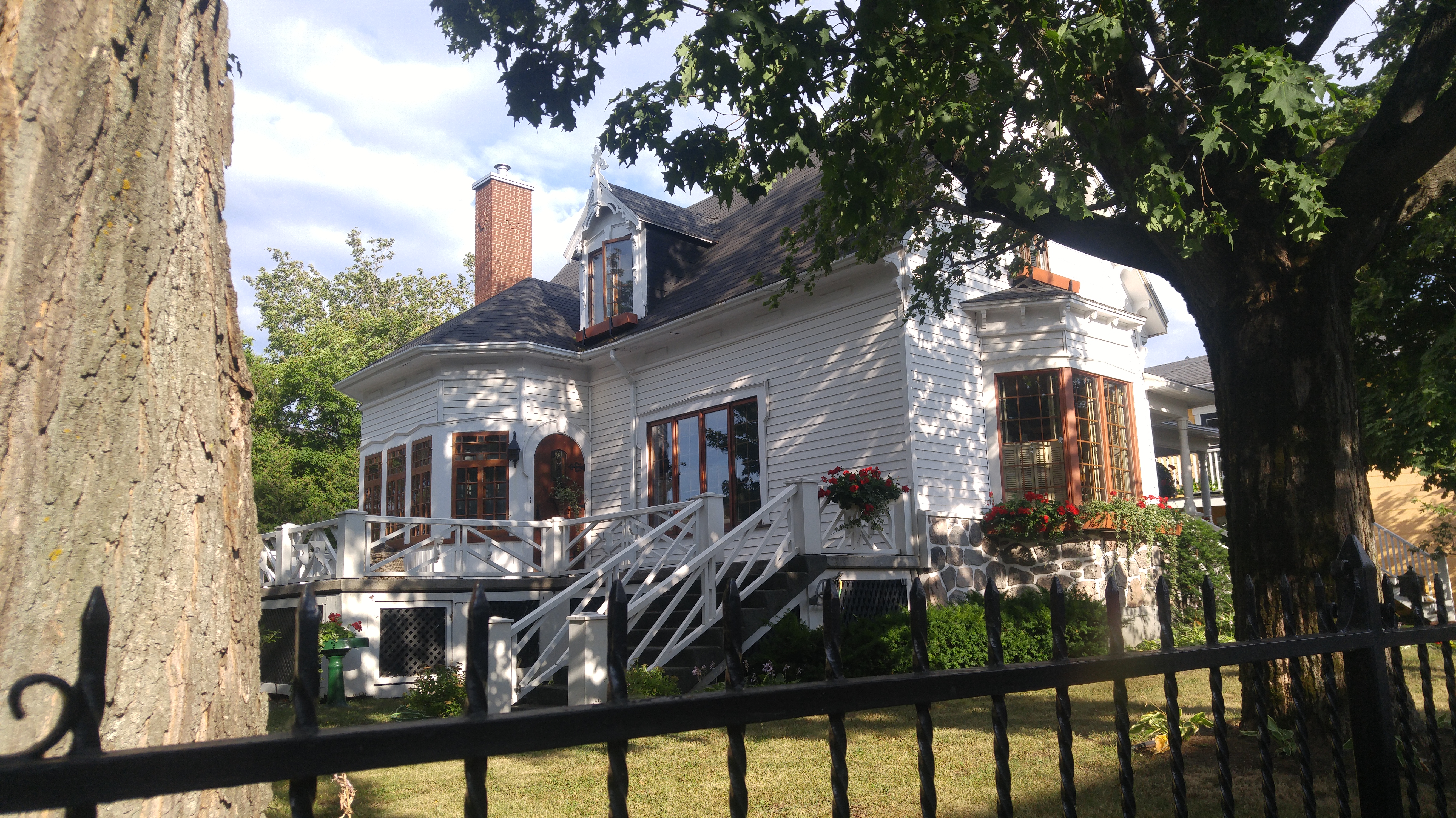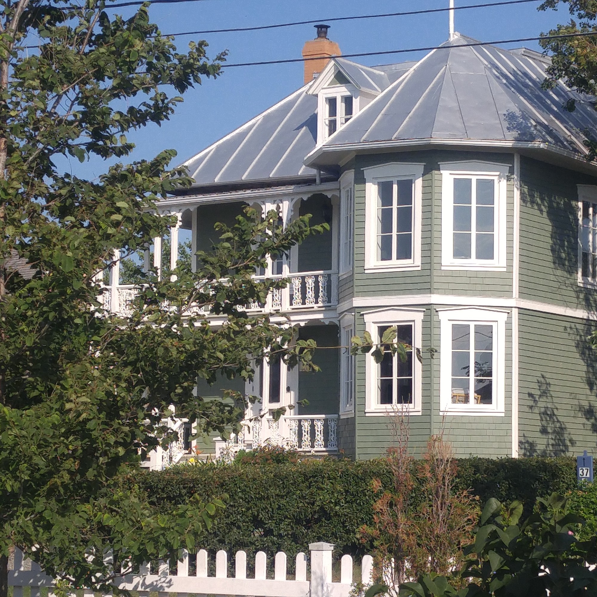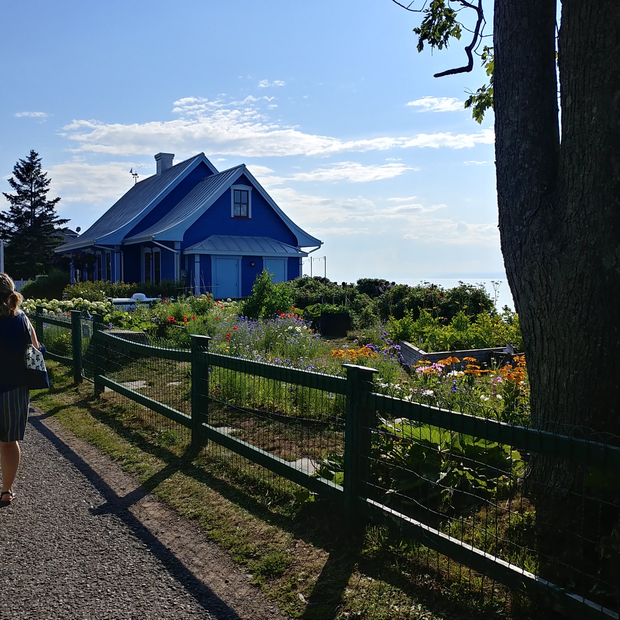 Et pour terminer, je vous parle de mes balades. Notre chalet se trouvait à être vis-à-vis à peu près la moitié du village, pas DANS le village, mais sur la 132 appelée rue (ou route je ne sais plus) de la Montagne. Toute seule, j’ai fait une boucle du chalet vers l’est complètement pour revenir par le village au chalet: 6 km. Et j’ai fait la boucle ouest, chalet-132-village-chalet: 8 km. Et la dernière journée, Yvan et moi avons fait Portage-Rivière-du-Loup sur la 132, avec les anciennes maisons terriblement riches: environ 7 km. Les images sont de la dernière balade. Et nous avons rencontrés les propriétaires de la dernière maison rouge.