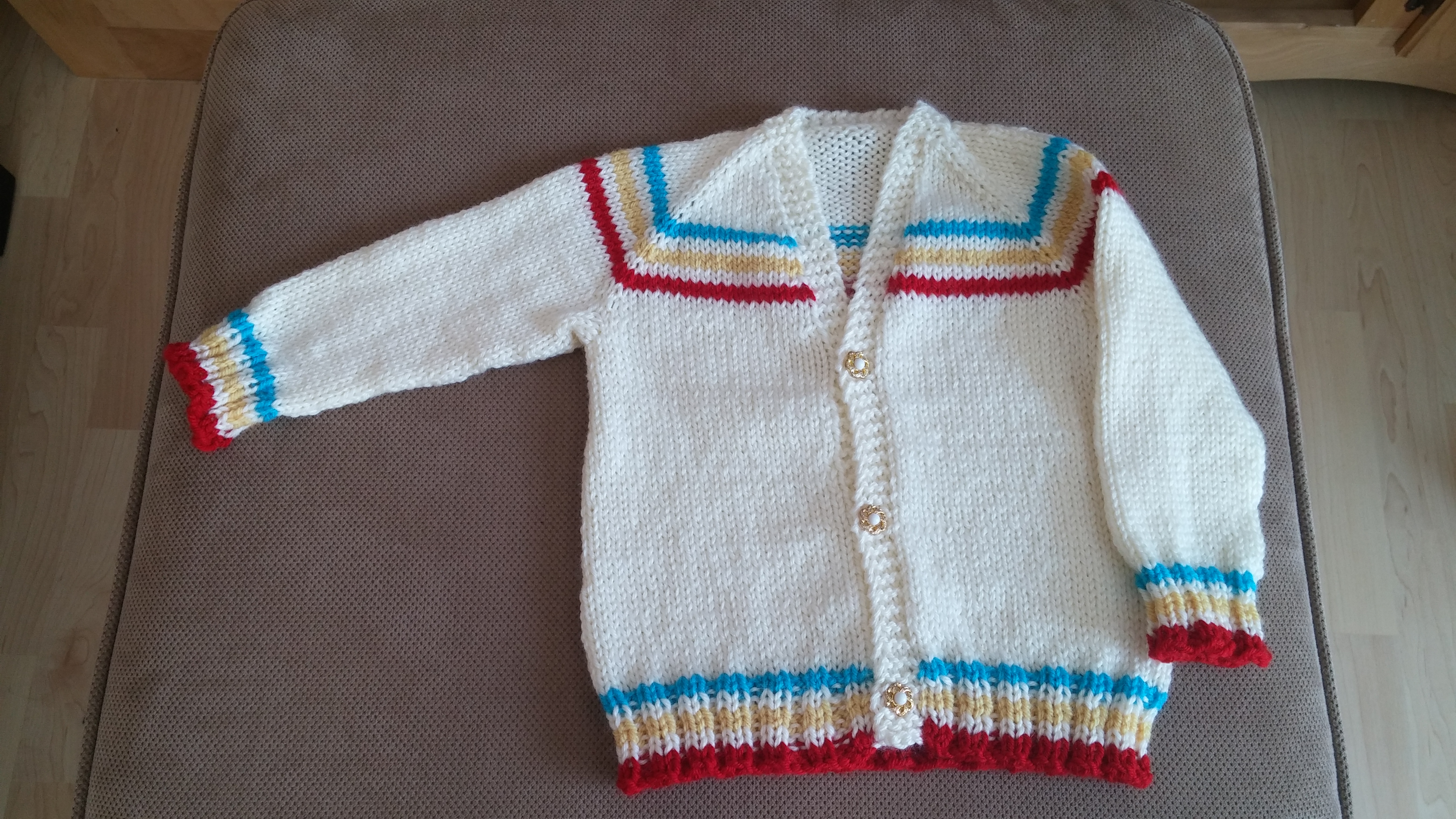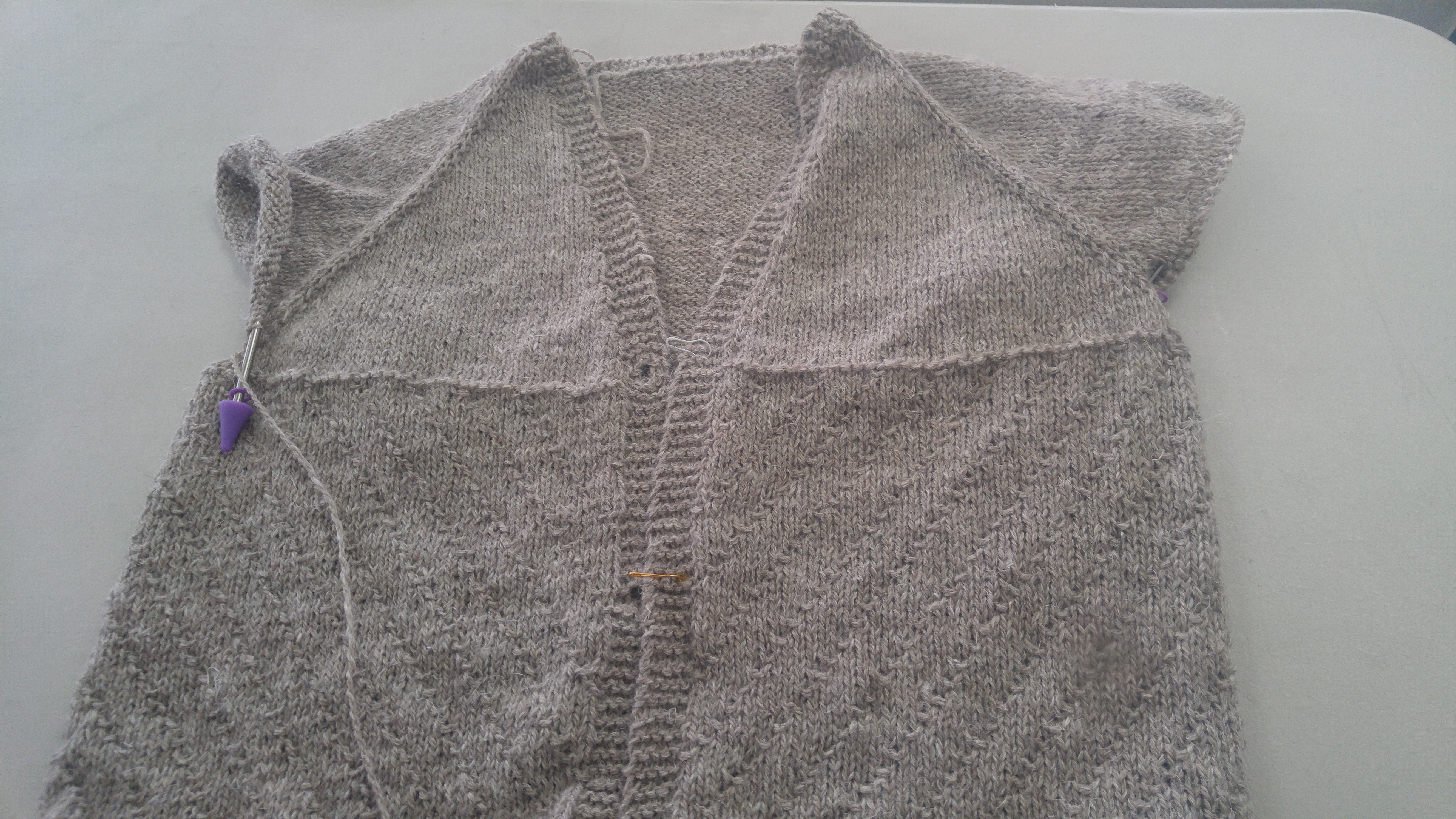 Mais je ne le répéterai jamais assez, si vous n’êtes pas beaucoup avancé en tricot, ne faites aucune variante. Gardez ça pour votre 2ème veste. Ne faites pas de boutonnière non plus. Les boutonnières vont probablement vous demander des calculs. Et ça se porte bien une veste, même si elle n’a pas de boutons.