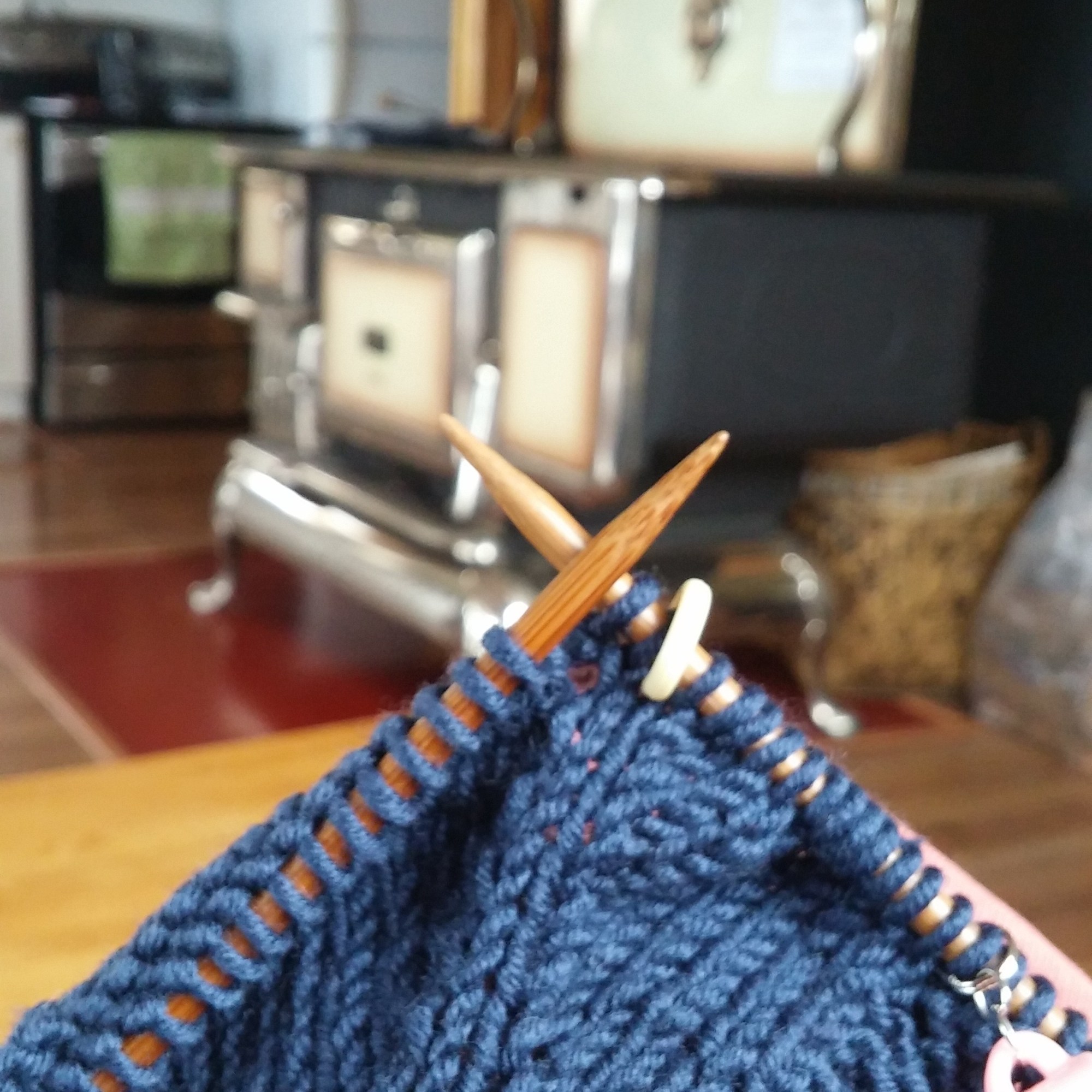 Pour mon premier modèle pour adulte, j’ai utilisé un beau fil 100% mérino: la Rialto de Debbie Bliss. C’est la marine. Mon doux que je suis arrivée juste! J’en n’avais pas tout à fait 500g. Je l’ai quand même eu à plus bas prix que ce qu’elle vaut cette laine, par la boutique Petit Galop où j’ai donné un cours de débutant l’an passé.