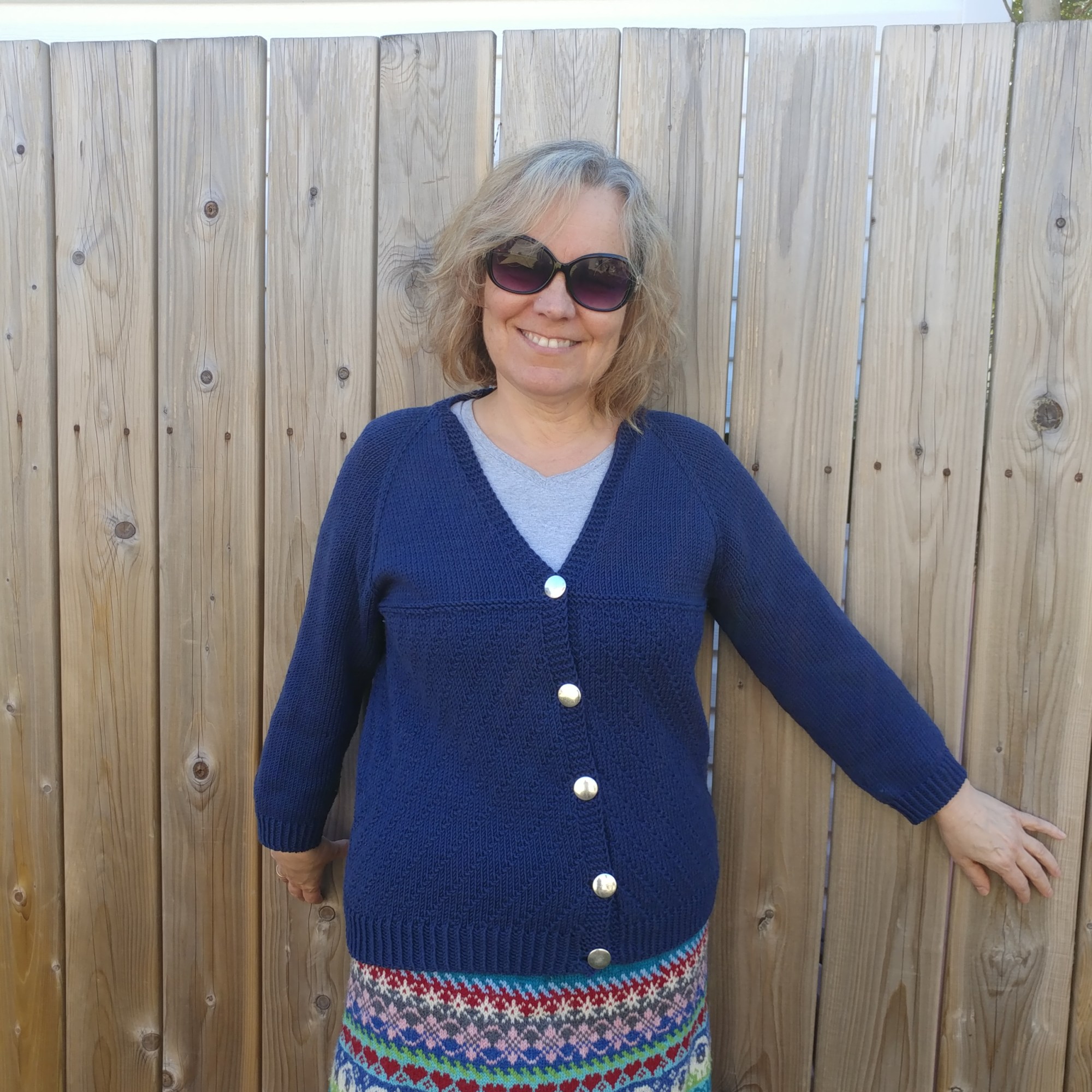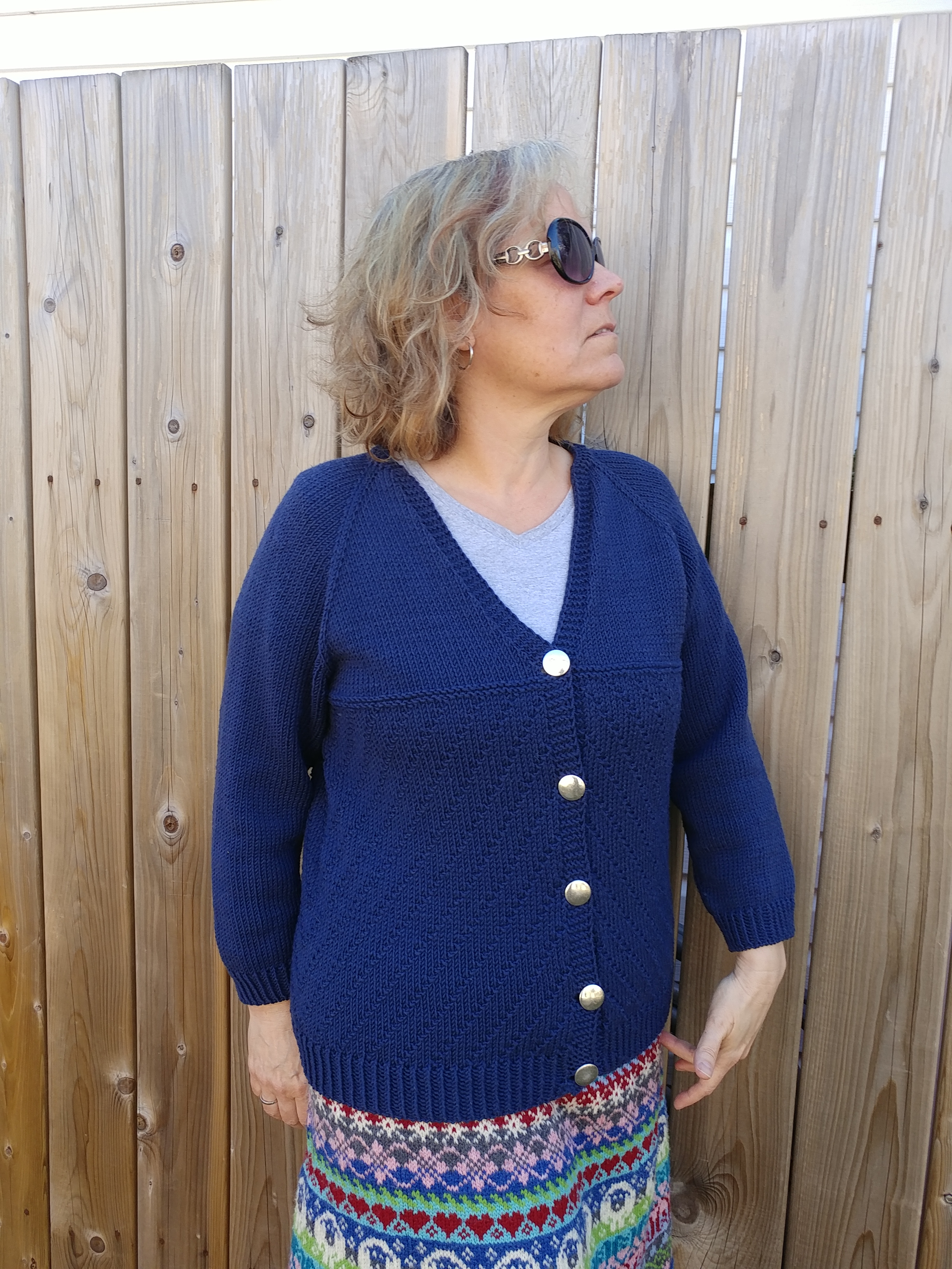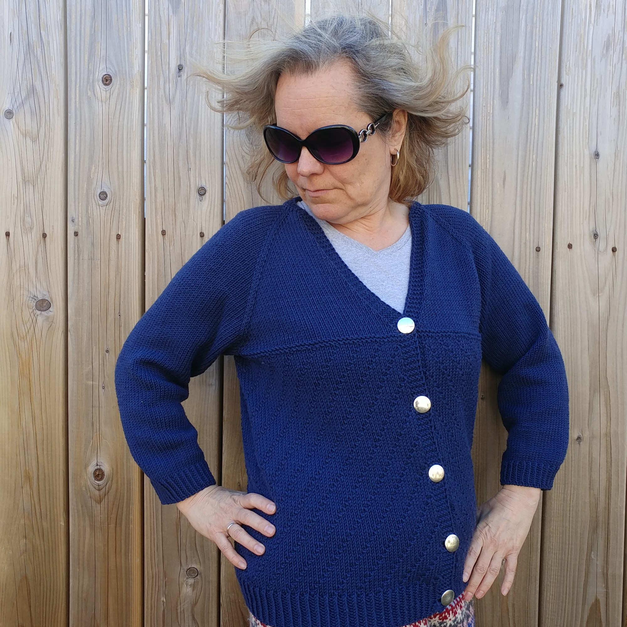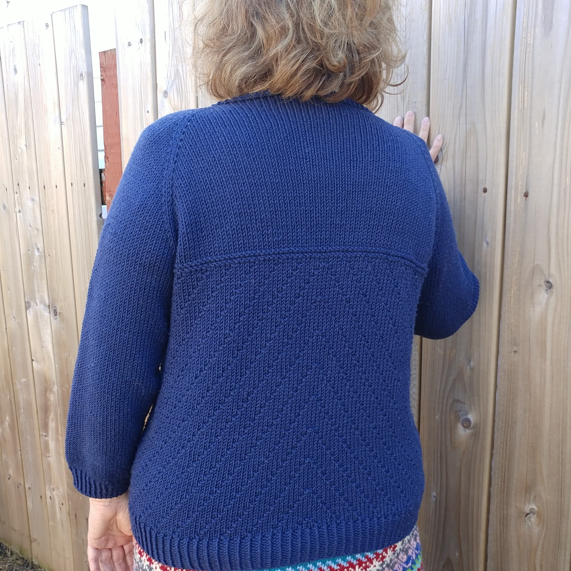 Et pour terminer, je l’ai refait en Berroco Vintage dk, achetée chez Point Mousse (dans une couleur qui m’a beaucoup attirée), alors que je commençais à y donner des cours de tricot. Je l’ai fait plus longue, avec des fentes sur les côtés, des poches intégrées et un autre motif dans le dos et sur les devants. Et hop! 3 autres options! Vous savez, j’ai bien de la difficulté à tricoter juste en jersey.