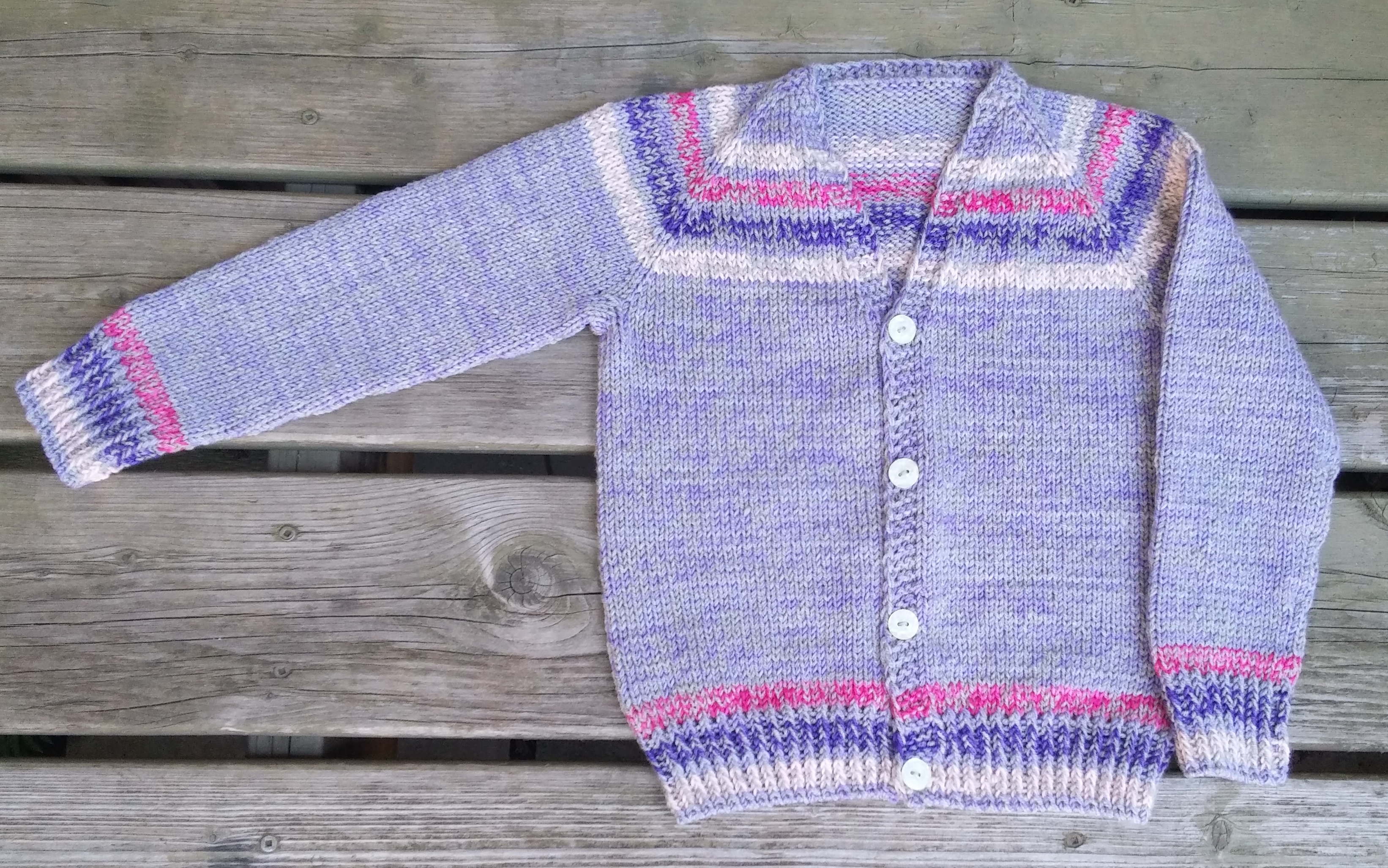 Je l’ai d’abord essayé dans des grandeurs pour enfants, pour mes petites-filles. Pour enfant, j’ai utilisé l’aiguille circulaire de 60 cm/24 » pour le corps et des aiguilles double-pointes pour les manches (si vous trouvez une aiguille de 23 cm/9 » et 4.5 mm, ce serait bien aussi, mais vous devrez changer de méthode en cours de processus ce qui n’est pas nécessaire avec les douple-pointes). Pour adulte, j’ai utilisé l’aiguille circulaire de 80 cm/32 » pour le corps, puis je commençais la manche avec une aiguille circulaire de 40 cm/16 » (c’est génial!), pour revenir à la longue de 80 cm et en magic loop, quand il n’y avait plus assez de mailles. Ah oui: on termine les côtes (du corps et des manches) avec une (ou des) aiguille(s) de 4 mm.