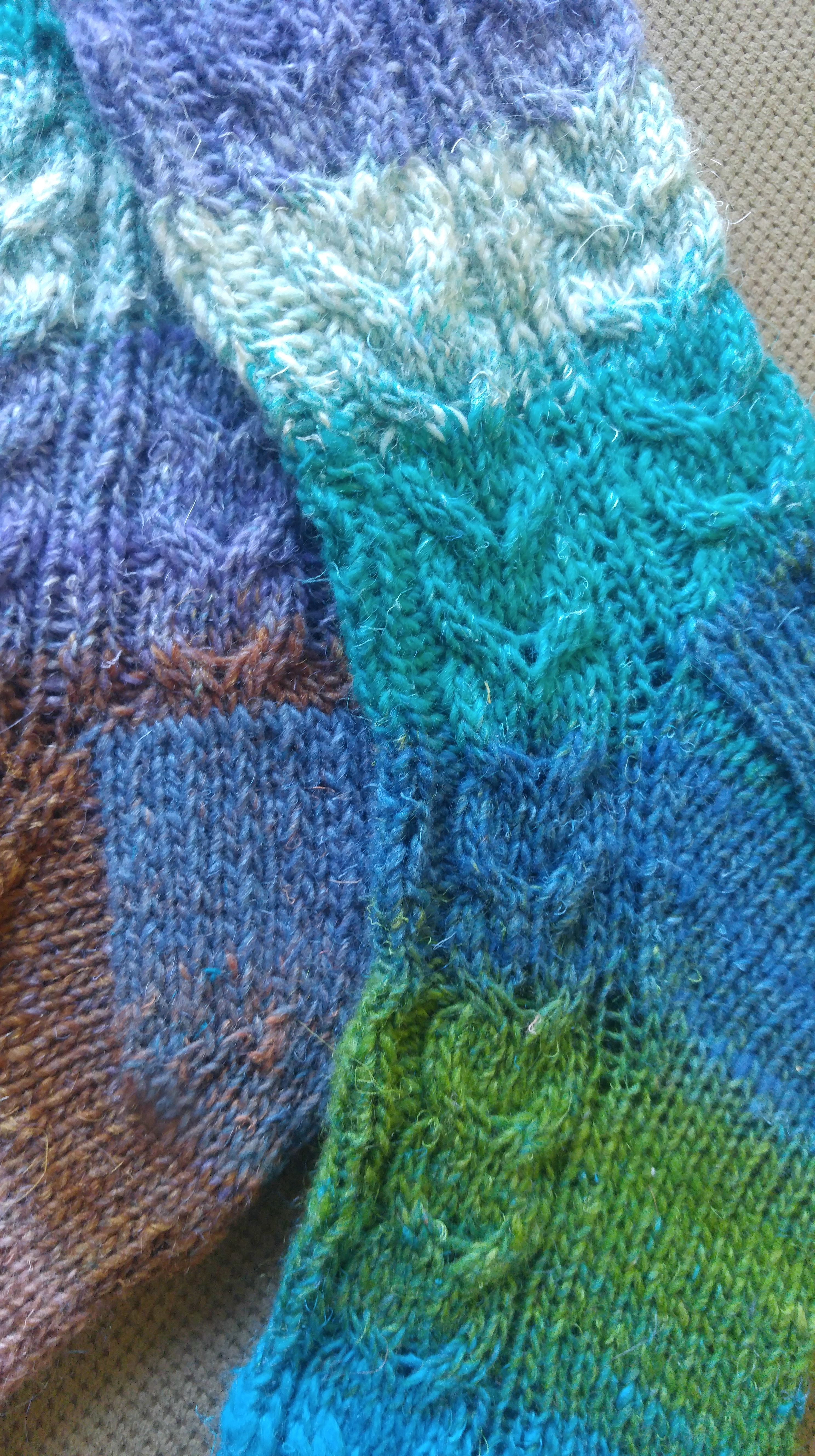 Aussi, il y a la Noro Silk garden socks qui existe depuis un bon bout qui est presque la même grosseur et que j’aime beaucoup. J’en ai acheté (encore l’hiver, dans la même période) chez Coeur de Mailles à Québec, et chez Suivez le fil à LaPocatière (cet été). J’aime ses couleurs!