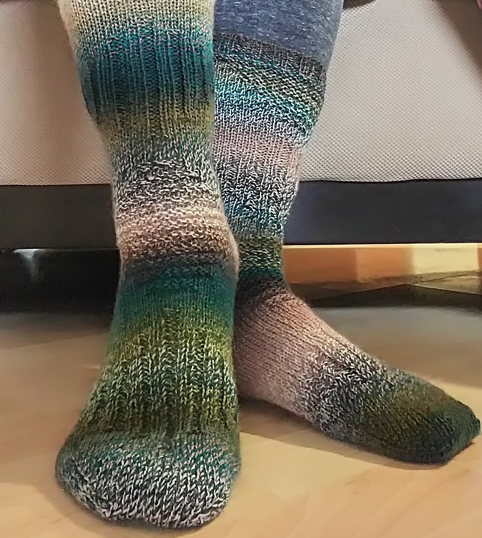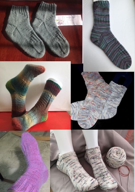 Il y a 2 paires de bas. Et les 2 modèles sont expliqués à partir de la jambe ou à partir de la pointe (depuis 2 ans, mes patrons de bas sont expliqués avec les 2 méthodes).