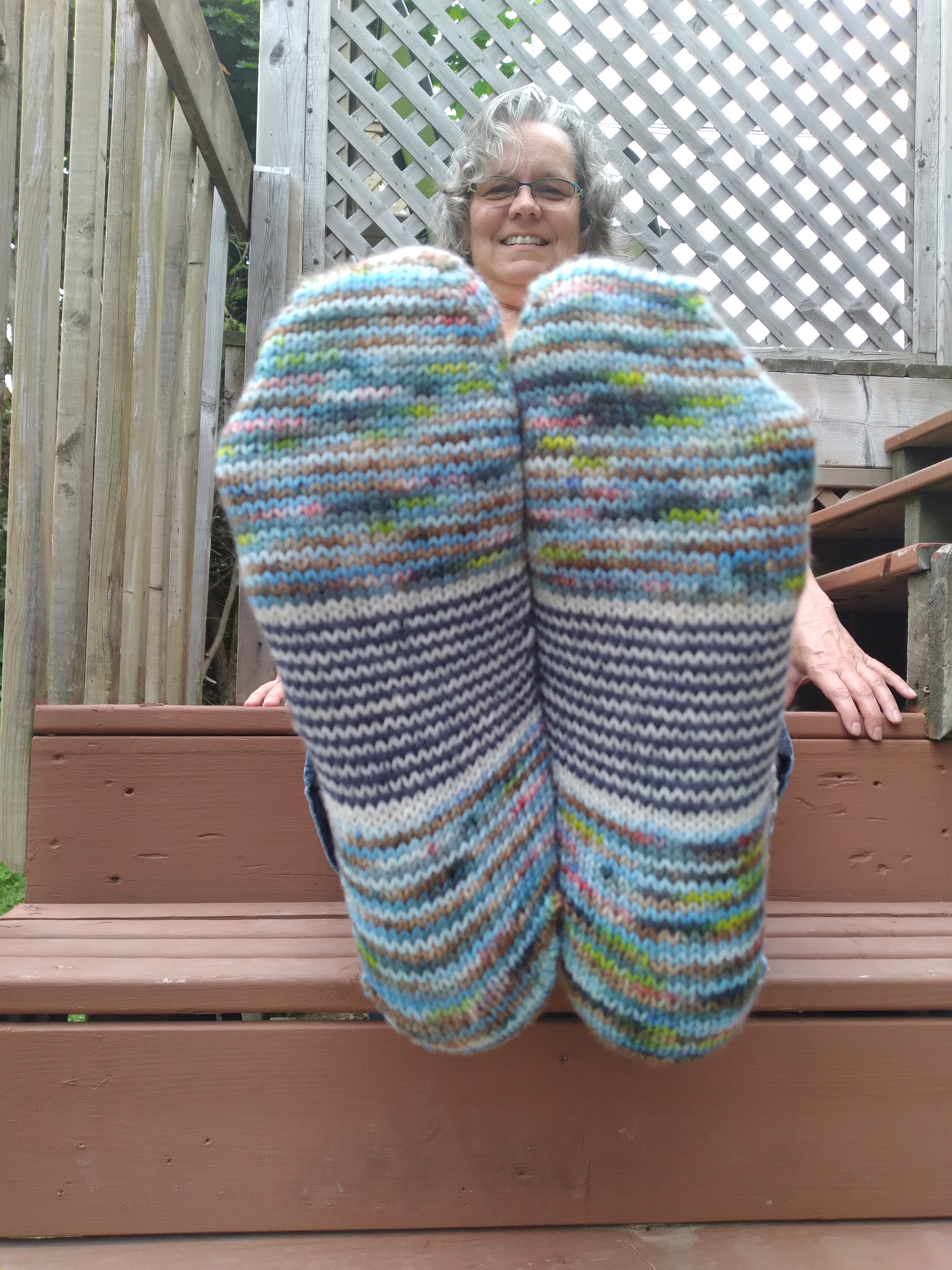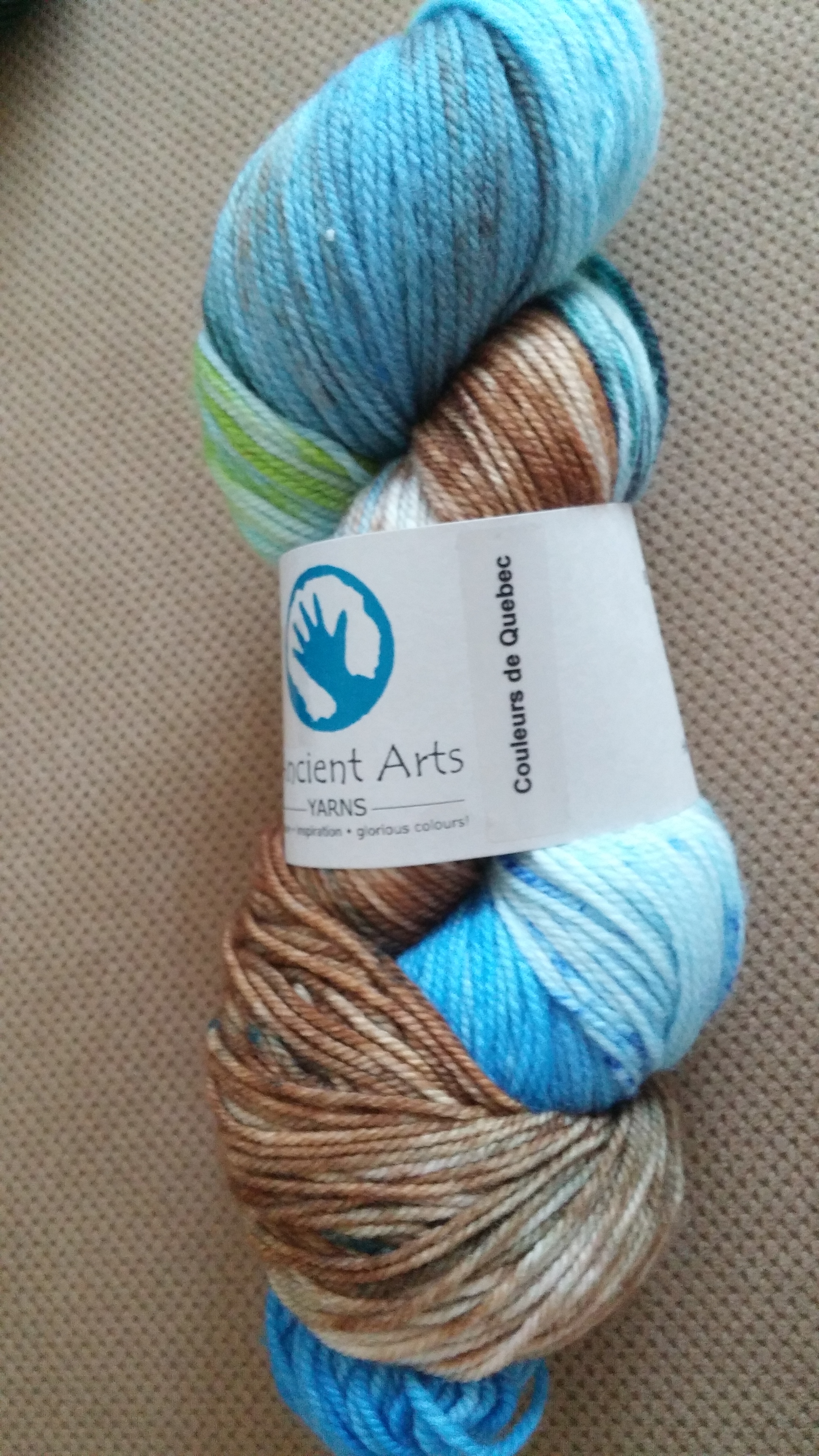 Et moi, c’est simplement dans un défi de bas (pour toute l’année) que le mois passé, j’ai créé ça, en utilisant la laine de Ancient Arts, celle qui avait le nom de « Couleur de Québec »