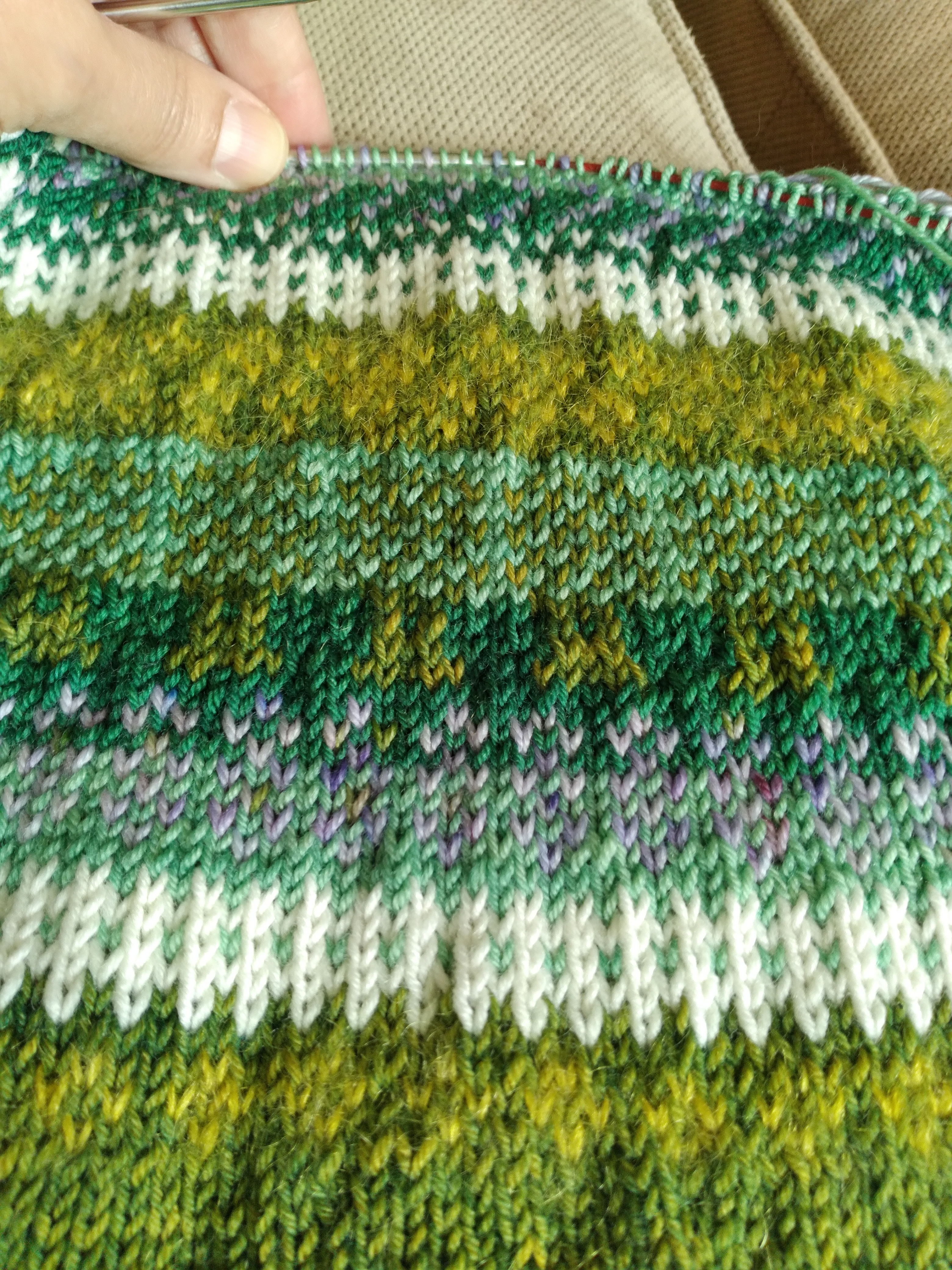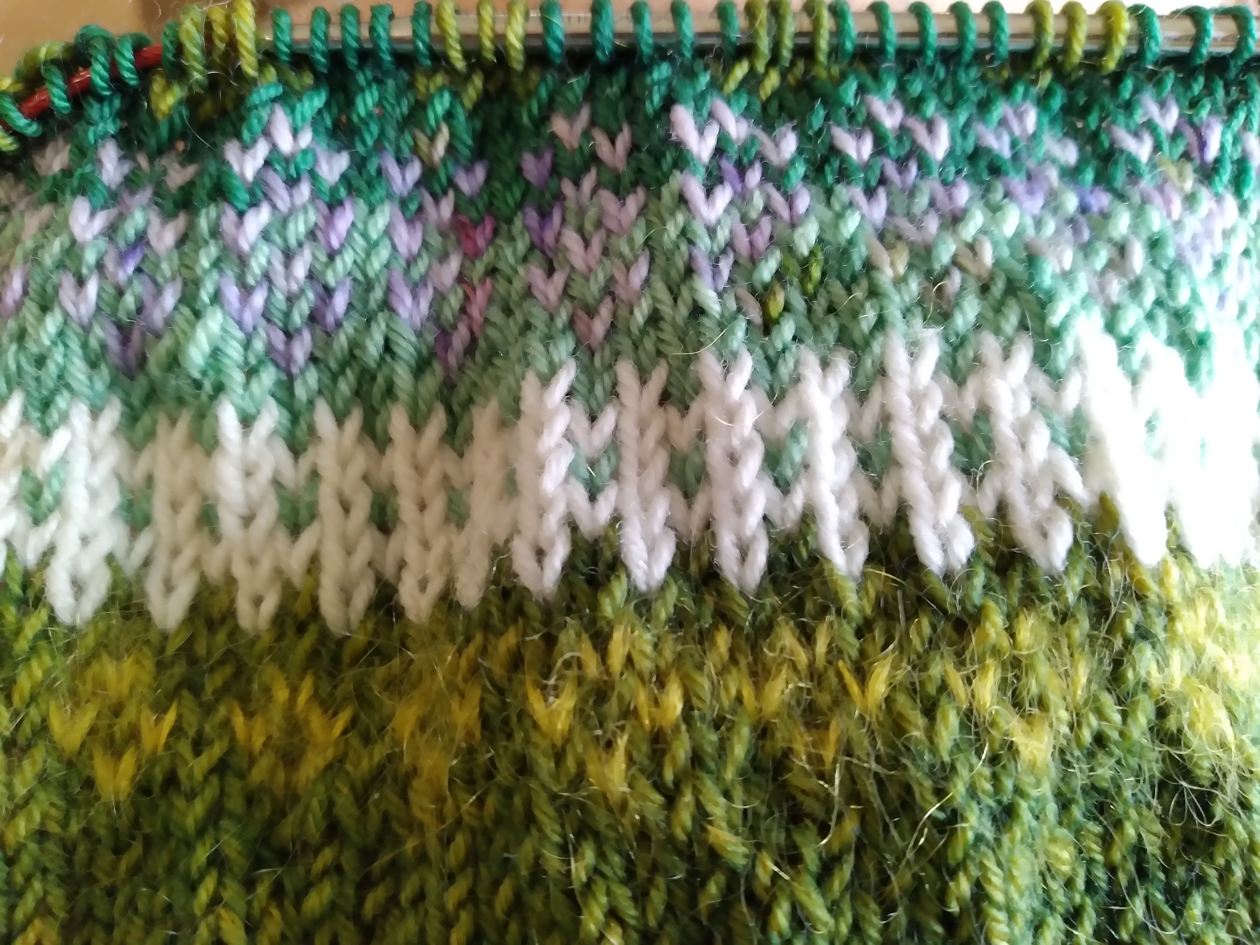 Moi j’y ajouterais: les rayures. Si je bâtissais un cours sur le « travail de couleur », je commencerais pas des rayures, puis des rayures qui feraient des chevrons (par concentrations de diminutions à certains endroits et concentrations d’augmentations à d’autres endroits).