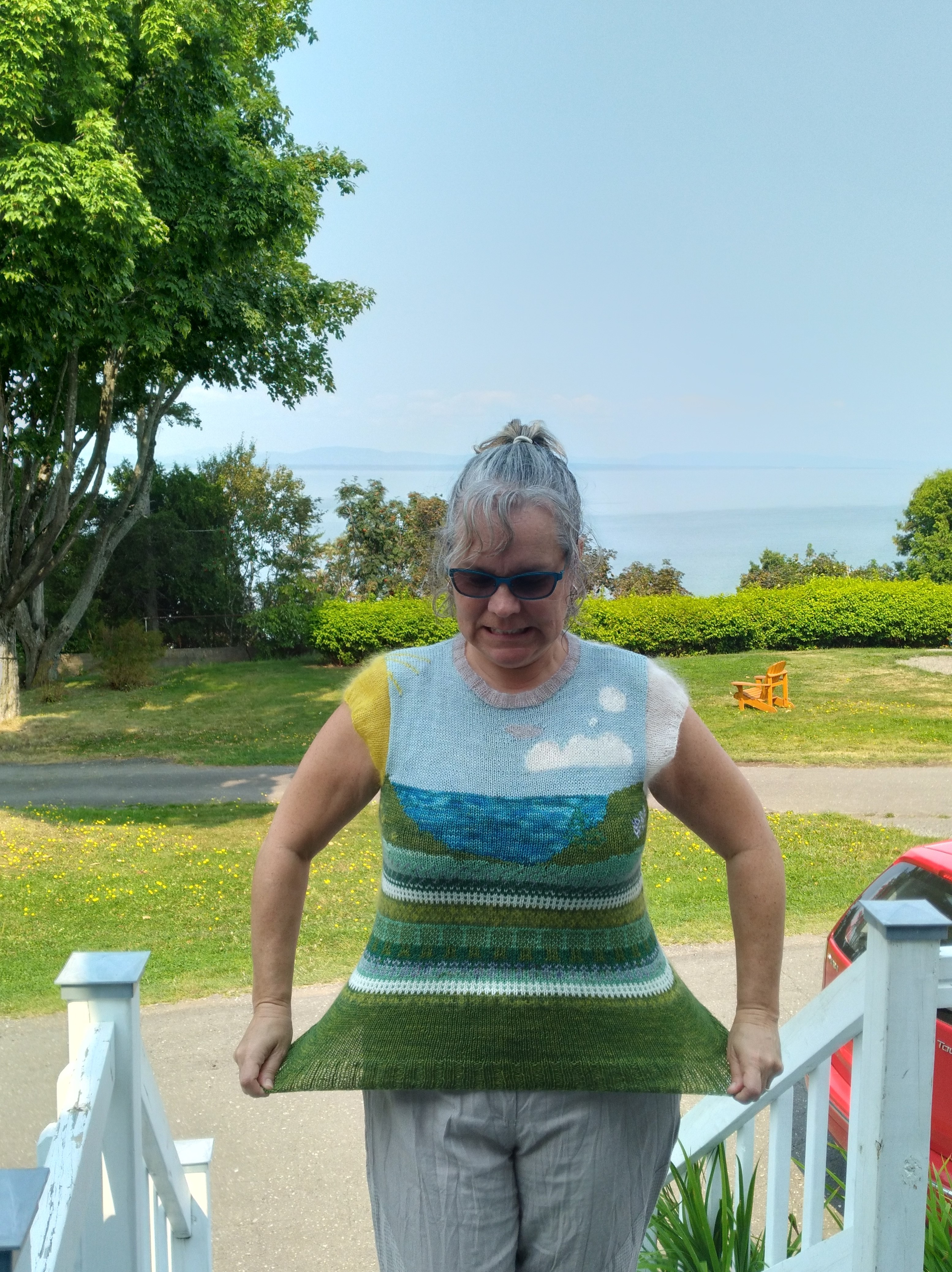 L’idée était de faire un petit chandail inspiré de mes photos de vacances de l’an passé à Notre-Dame-du-Portage. Voici les 2 photos en questions