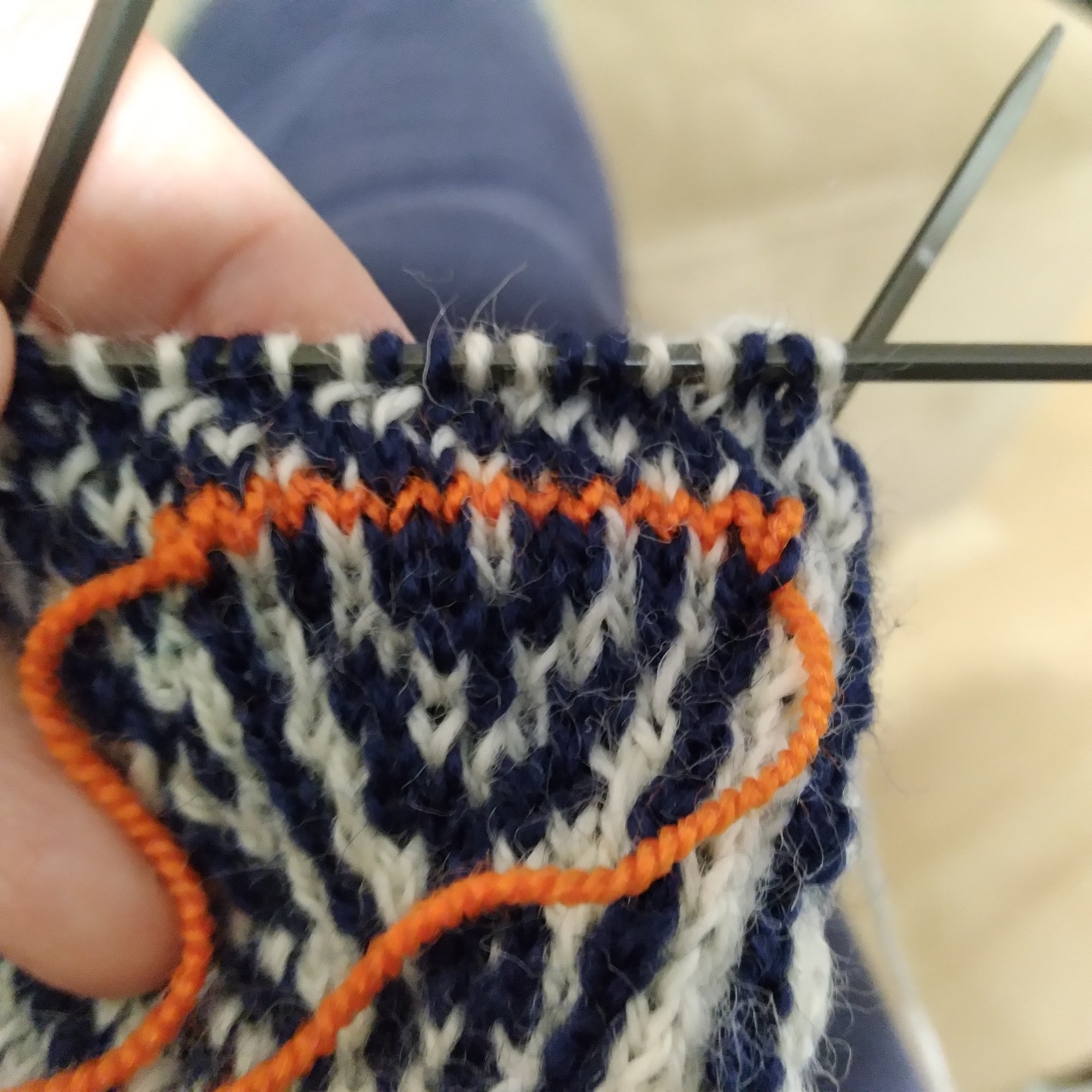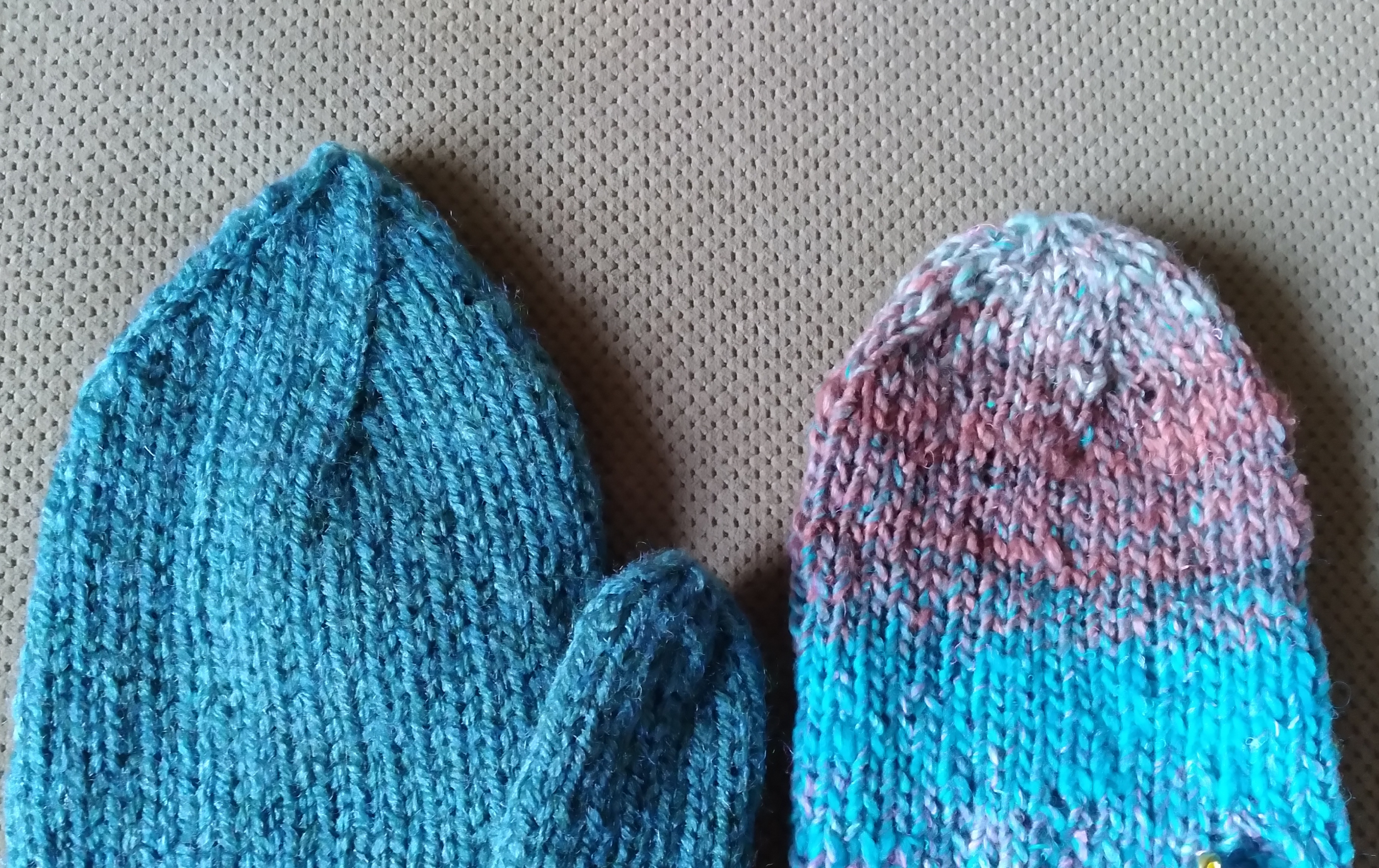 Avril: Cadeau pour les 3 ans d’Anaïs (même si sa fête était en mars), leggings tricotés avec des restes de laine. Je commence la « catégorie de patrons de la semaine » et repos forcé de tricot pour 10 jours.