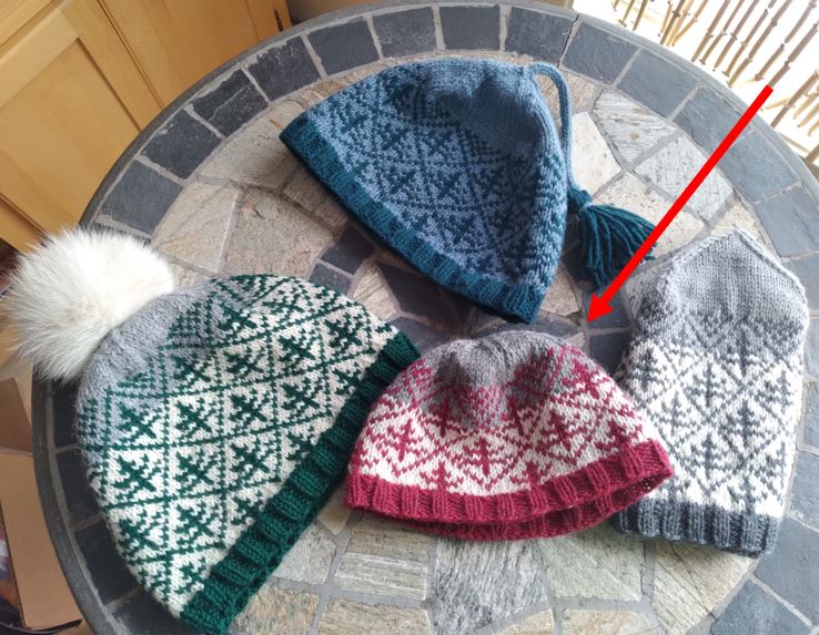 À peu de choses près, c’est la même chose. Ça se fait sous les côtes. Comme vous le savez, j’ai publié mon patron de tuque Épicéa, mais quand j’ai fait le plus petit modèle, j’ai trouvé que je l’avais fait un peu court. Et, tout de suite, j’ai eu l’idée d’y ajouter de petites oreilles, ce qui maintient si bien une tuque ou un bonnet, qui pourrait nous sembler un peu juste, sur nos oreilles.
