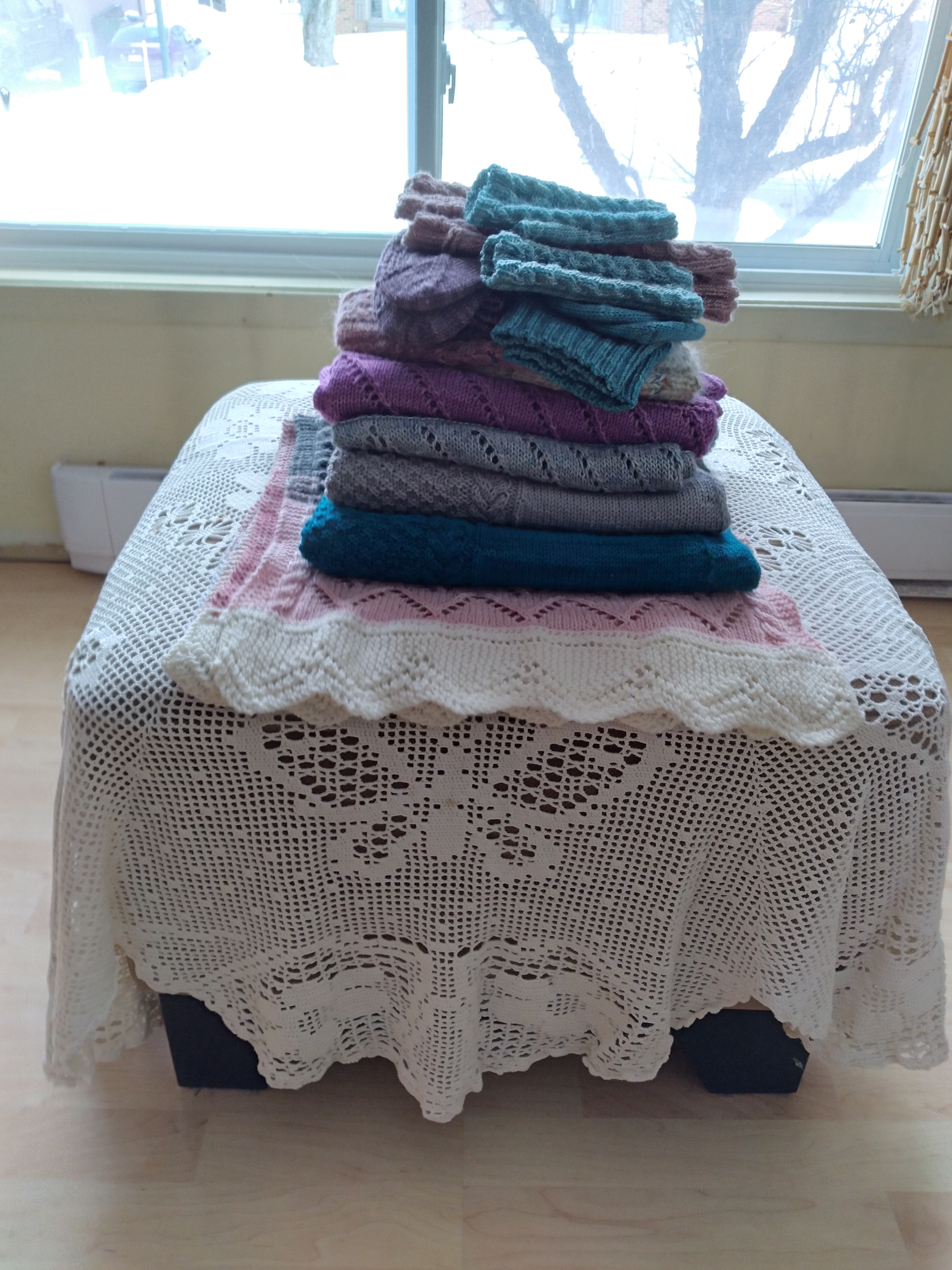 C’est souvent un an d’avance que je travaille les patrons pour l’année suivante. Et l’an passé, j’ai créé plus de tricots légers qu’habituellement (et plus de chandails). C’est ce qui se passe présentement.