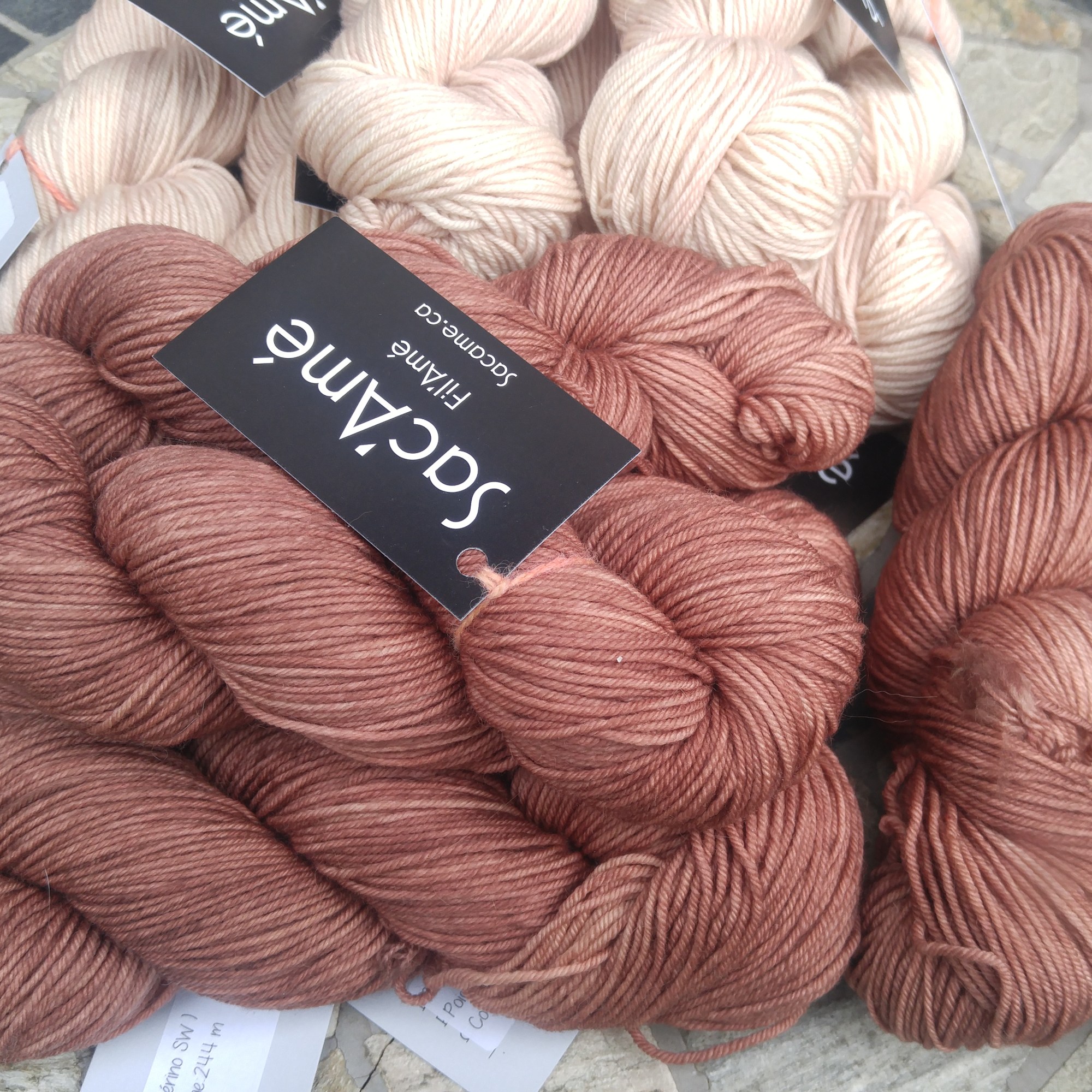 Ce modèle est tricoté avec une laine dite « grosseur no 3 » (ou dk) avec une aiguille circulaire de 4.5 mm (sauf pour les côtes qui sont faites avec une 4 mm). Pour la laine, j’ai utilisé de la Didier de Sac’Amé. Anecdote au sujet de la laine: c’est la couleur Zab, mais avec une beaucoup plus forte concentration de pigment. Amélie la trouvait ratée, mais moi, je lui ai achetée dans l’idée de me faire cette veste. Et je ne suis pas déçue! J’espère qu’elle va décider de recommencer cette couleur!