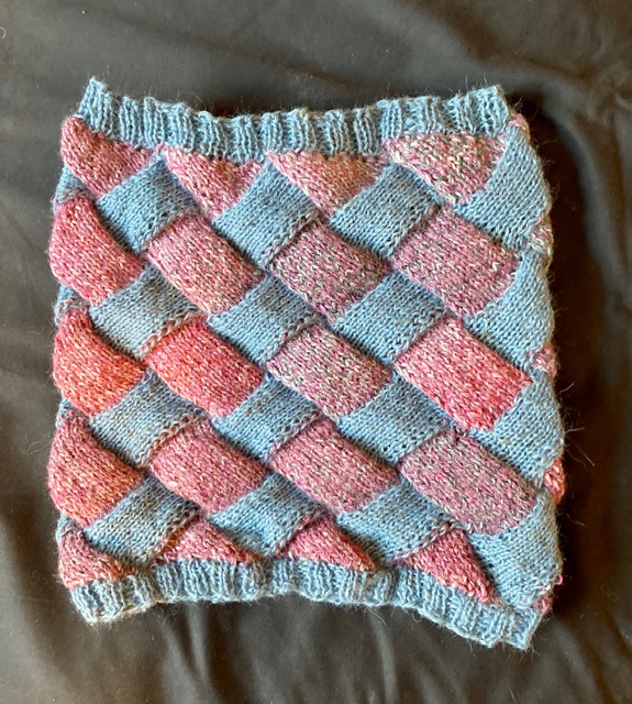 Et ce qui m’a semblé le plus logique pour apprendre cette technique, c’est d’écrire un patron de col. En effet, c’est même idéal: sur une aiguille circulaire juste de la bonne longueur: pas d’aiguilles double-pointes à gérer, ni de câble à tirer (comme pour le magic loop, ce qui n’est pas le cas pour le col).
