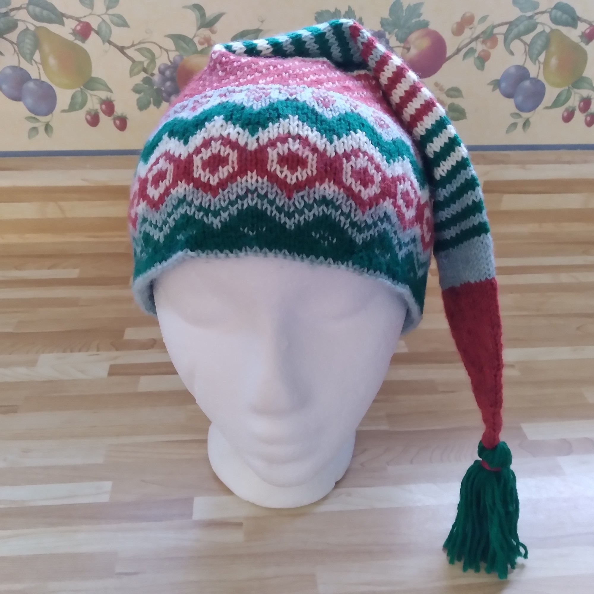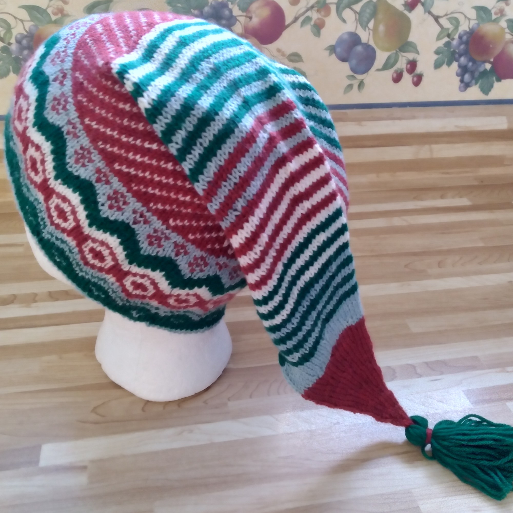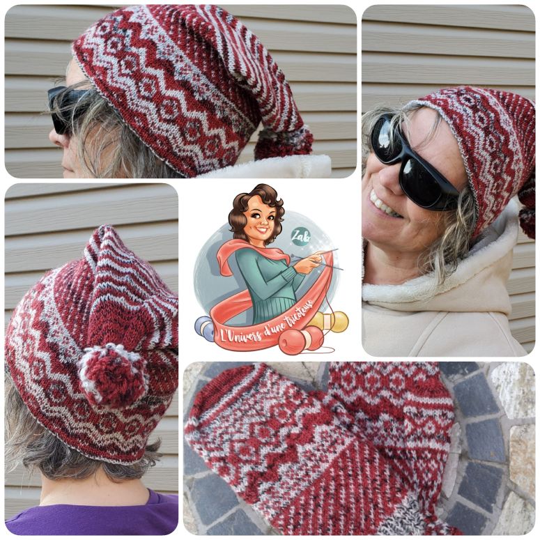 Mais cette tuque, je l’ai refait 2 autres fois, afin d’avoir (et d’expérimenter) 2 autres longueurs: la ronde et la « encore plus longue » que j’appelle « longueur tuque de lutin ».