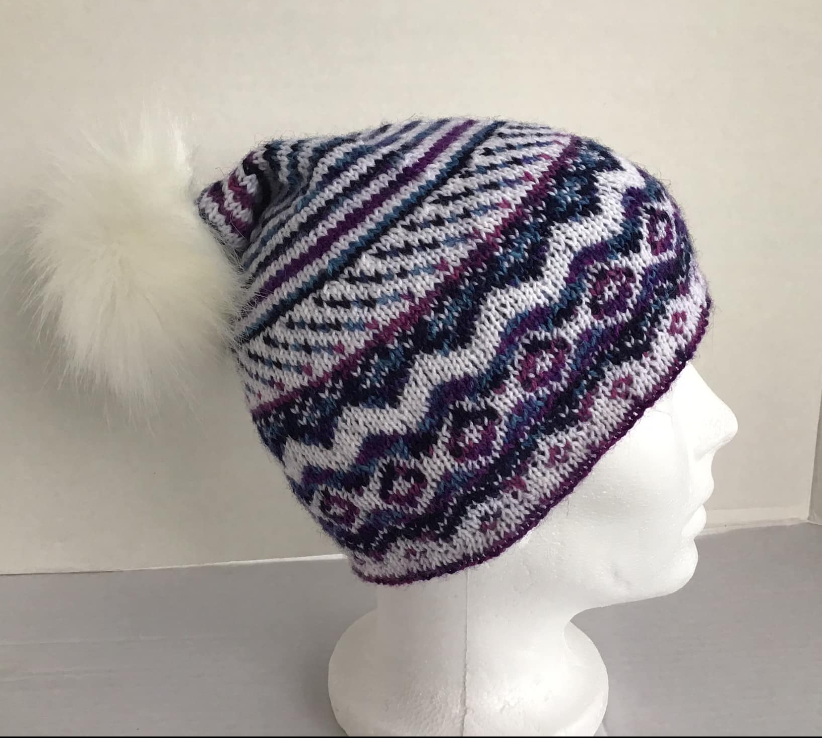 Il s’agit de la suite d’une collaboration avec les laines Ursalia fibres studio. Au tout début de cette année, je publiais mon patron Mitaines de Guenièvre sur ravelry. Je savais que j’allais faire une tuque avec la même laine mais…ça a tardé un peu.