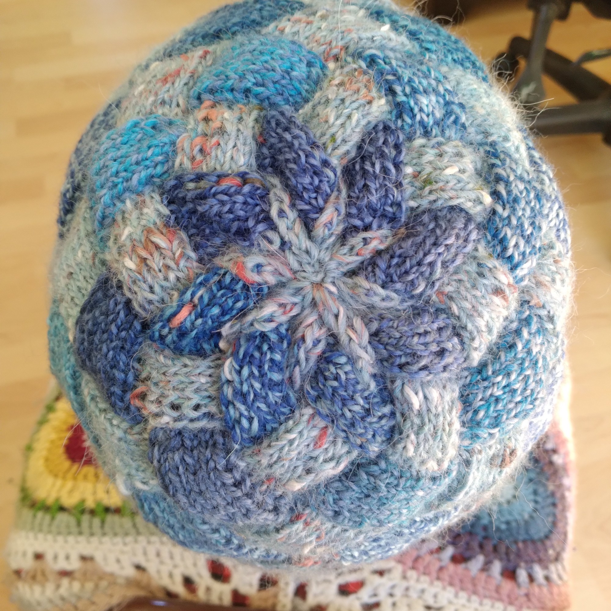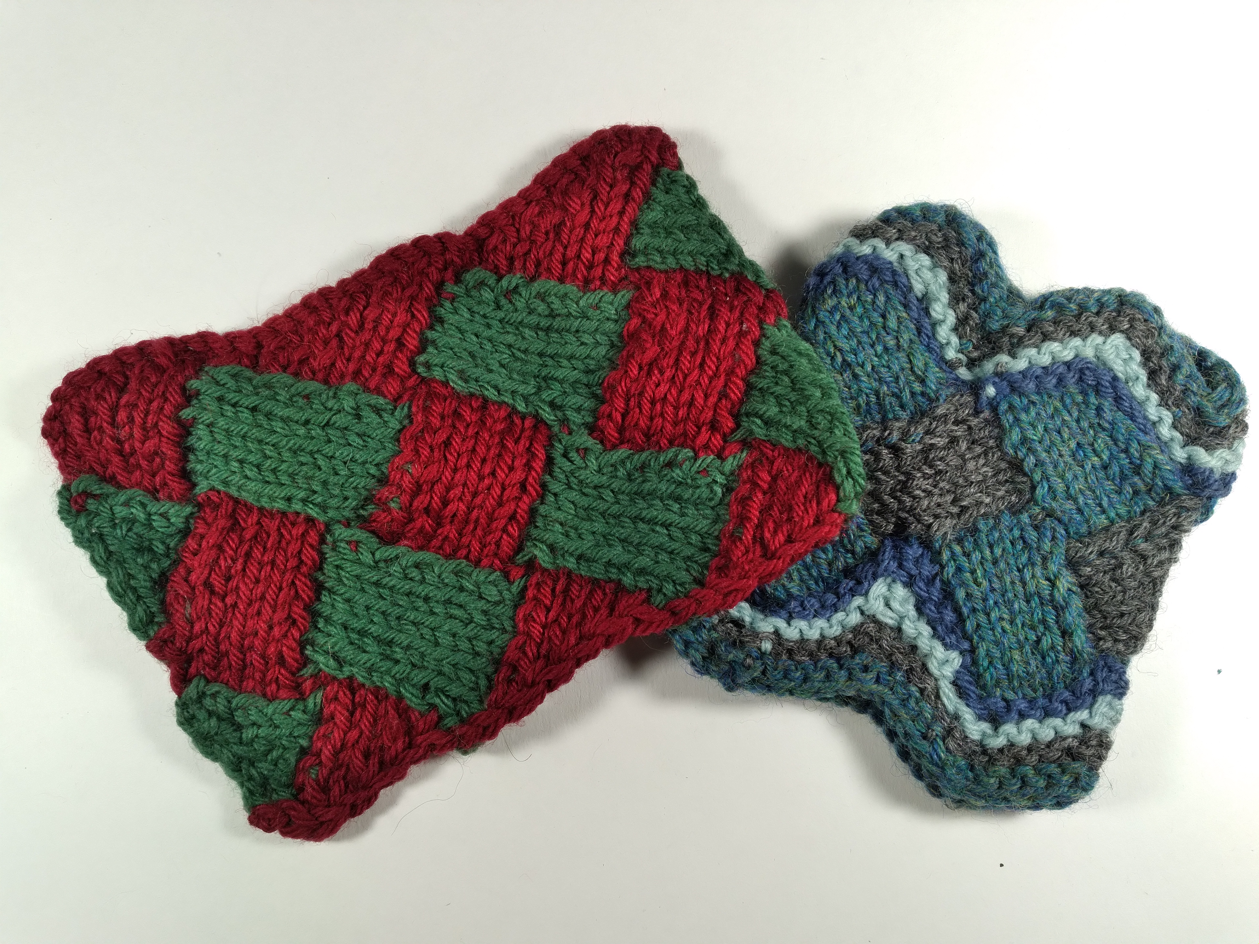 Durant l’été 2022, je me suis beaucoup amusée dans cette technique. J’en avais déjà fait pas mal, mais là, c’est à la technique de tricot à reculons, très utile dans les entrelacs, dans laquelle je me suis particulièrement exercée. Je la montre dans les parties 2 des vidéos (entrelacs en aller-retour et en rond). Et c’est un peu à cause de mon cours au festival de la P’tite laine que je m’y suis mise autant. Le cours était sur le jacquard, l’intarsia et les entrelacs. Des 3, c’était la technique qui était la plus « loin ». Mais tous mes élèves en bénificient maintenant.