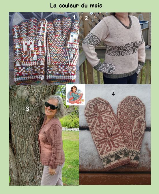 À droite: 1-Gants Alicia, 2-Chandail Zab-Amé, 3-Veste La Comtesse, 4-Mitaines Zab-Amé.