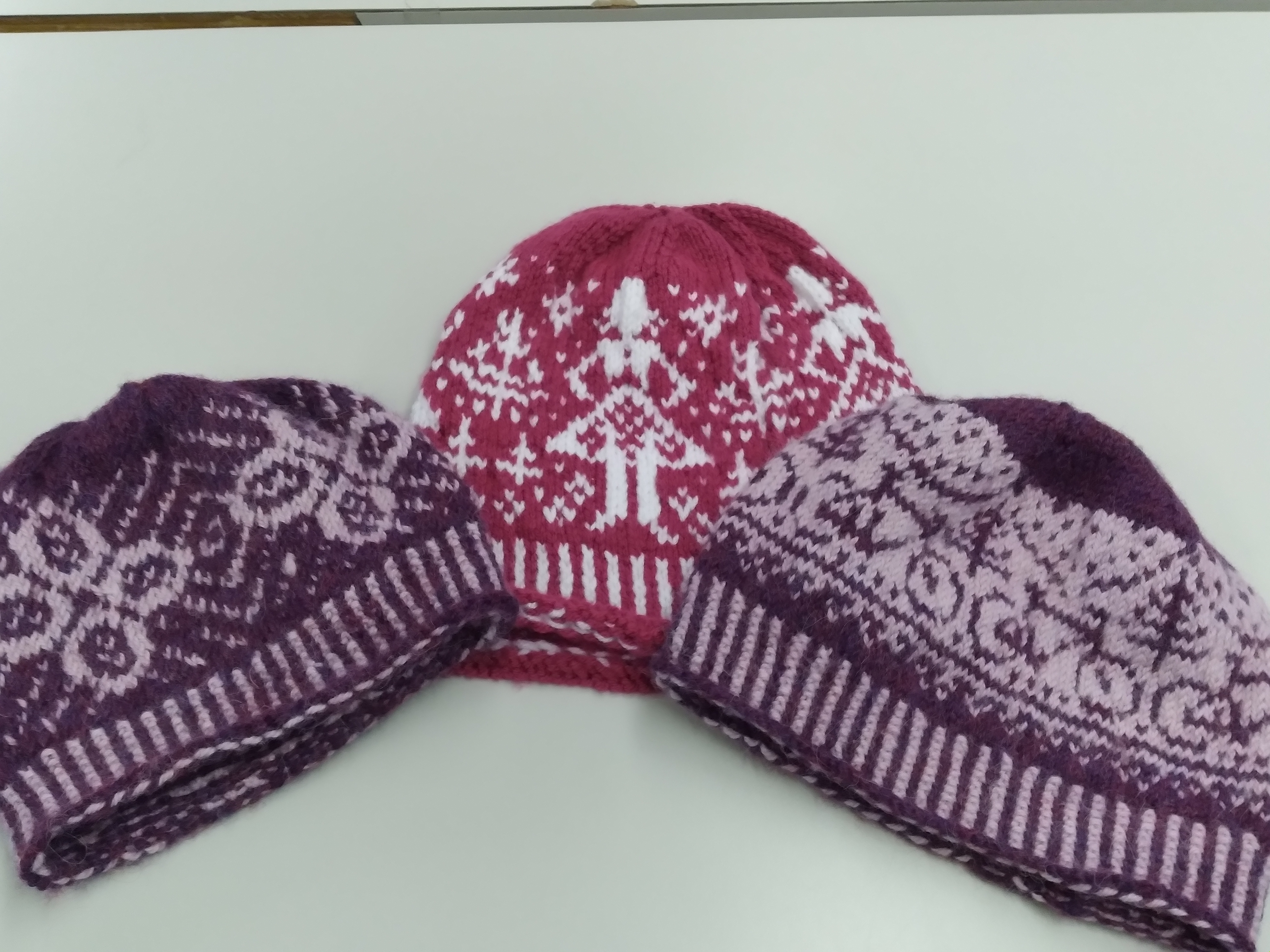 (Tricots de mes élèves ici-bas, selon des patrons que j’ai créé pour elles)