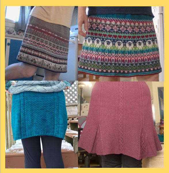 Pourquoi je fais des jupes? Parce qu’elles sont confortables!! Ça fait quelques années que j’en fais (j’en ai quelques unes tricotées, inventées pour certaines, et une d’un patron de Maude L.Baril), mais c’est récent que j’ai découvert à quel point c’est confortable! En prime, c’est plus facile et moins long à faire qu’un chandail.