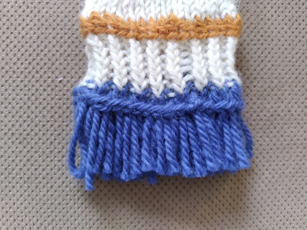 Il s’agit d’un montage qui produit des franges dans le bas du poignet. Je vais y aller directement avec la vidéo mais, en gros, si vous savez faire le montage à l’Italienne (long tail cast on), il y a une certaine parenté. Cliquez sur l’image ici-bas pour accéder à la vidéo.