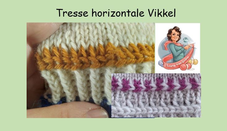 Elle se fait sur un seul rang. Pour l’instant, je n’ai mis que la vidéo à une seule couleur. Que ce soit la couleur principale ou une couleur contrastante, c’est la même chose. Parlant de « parenté », je dirais que si vous avez déjà fait une maille croisée vers la gauche, ça lui ressemble. Encore une fois, cliquez sur l’image pour avoir la vidéo.