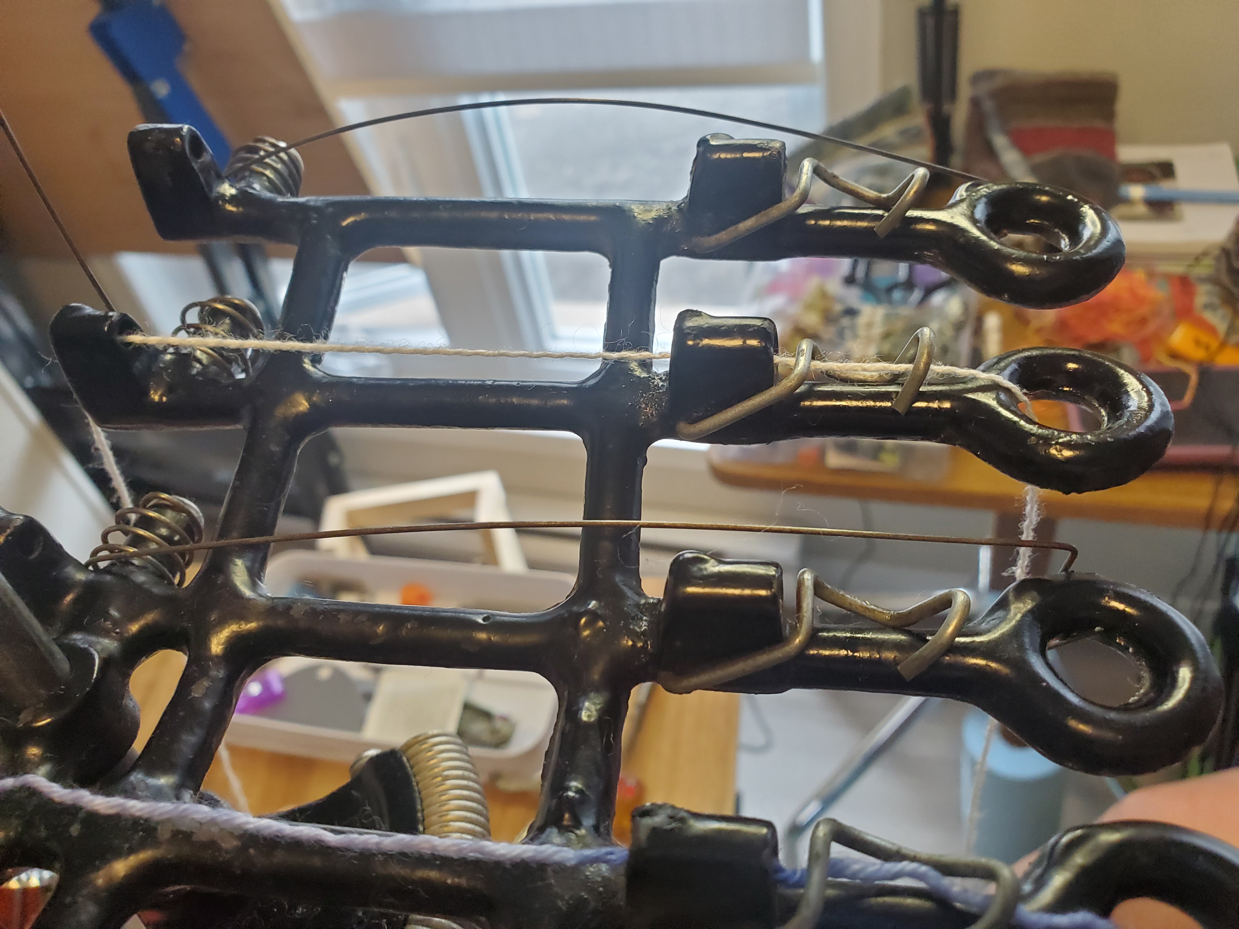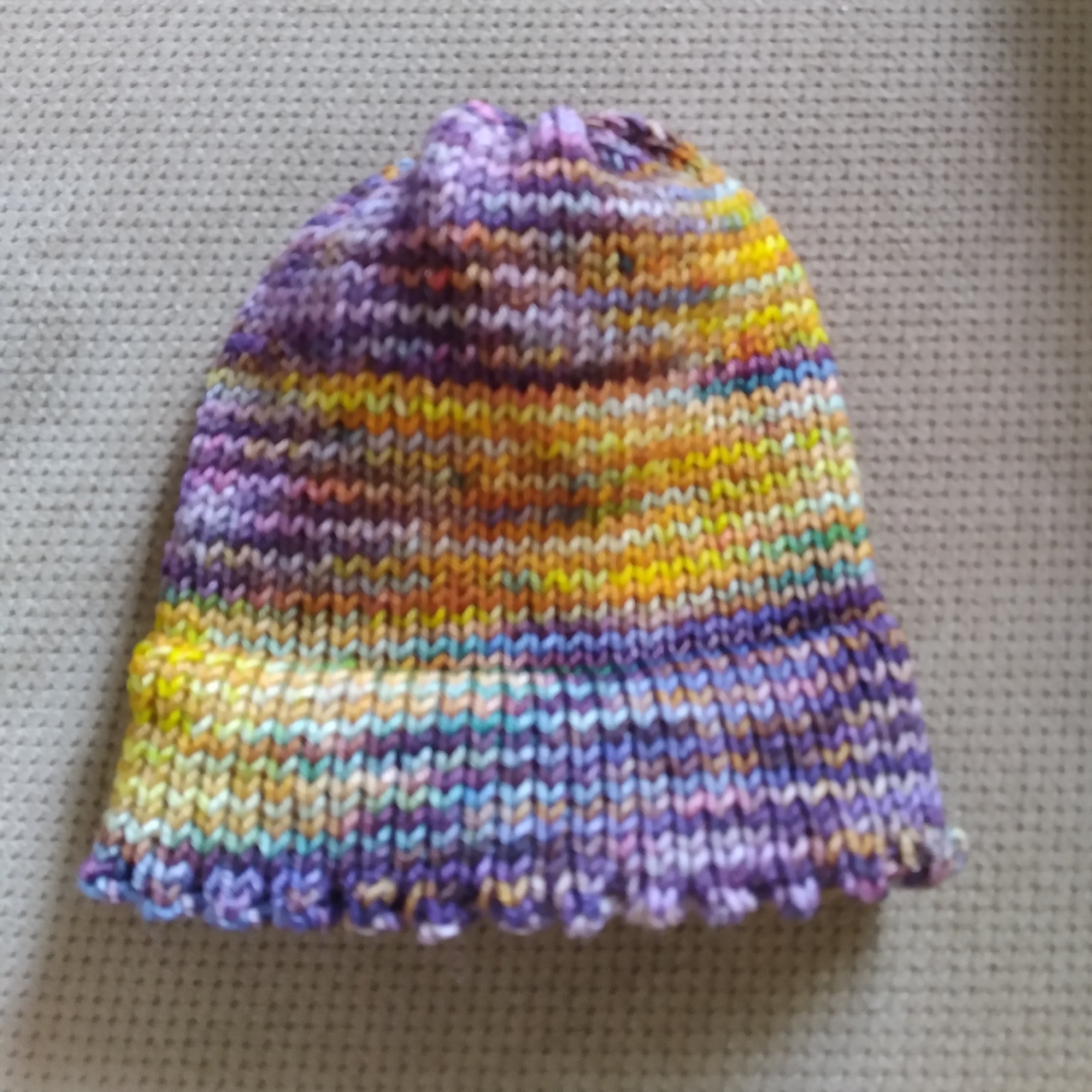 L’autre nouveauté du mois, c’est l’acquisition de ma machine à tricoter circulaire pour bas (on dit csm pour abréger: circular sock machine). Ouh, lala! Je vois qu’apprendre à faire des bas, ça va prendre encore quelques semaines (mois?). J’arrive à tricoter tout endroit, mais je n’ai pas encore utilisé le côteleur, et je ne réussis pas encore à faire les talons sans accrocs. Mais c’est mon but: faire des bas, tout simples, en un temps raisonable, c’est-à-dire moins de 3 heures, alors qu’à la main, ça va chercher dans les 20 heures. Ceci dit, la machine à tricoter, c’est pour le plaisir, aucun rapport avec l’enseignement du tricot (à la main dans mon cas). Donc, pour l’instant, je ne suis « pas bonne », et quand j’échappe une maille, ce n’est pas facile à ramasser comme dans un tricot à la main.