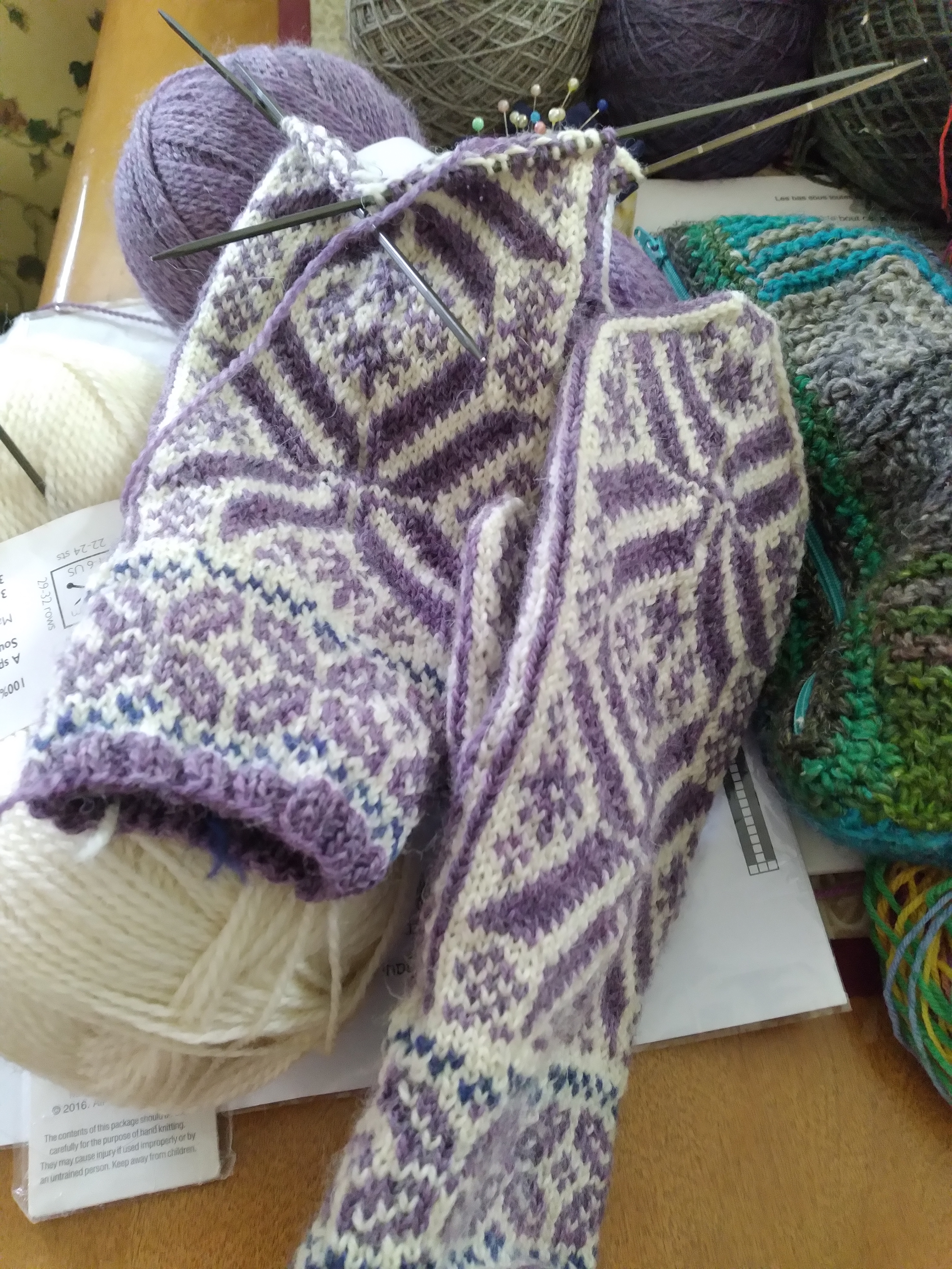À part ça, la collection de mitaines prend une tangeante (avec une éditrice) pour vraiment devenir un livre, mais qui va sortir un peu plus tard que je l’avais prévu au départ. J’aime mieux attendre le temps qu’il faut car ce sera peut-être mon seul livre. J’avoue qu’il y a un surplus de travail touchant l’édition, et que je n’ai pas tant de temps à y mettre présentement. J’en ai fait au tout début septembre, et pour le reste, ça se fera, de mon côté, plutôt en décembre. Mais Anna, mon éditrice (ça fait bien de dire ça hein?) travaille très fort présentement.