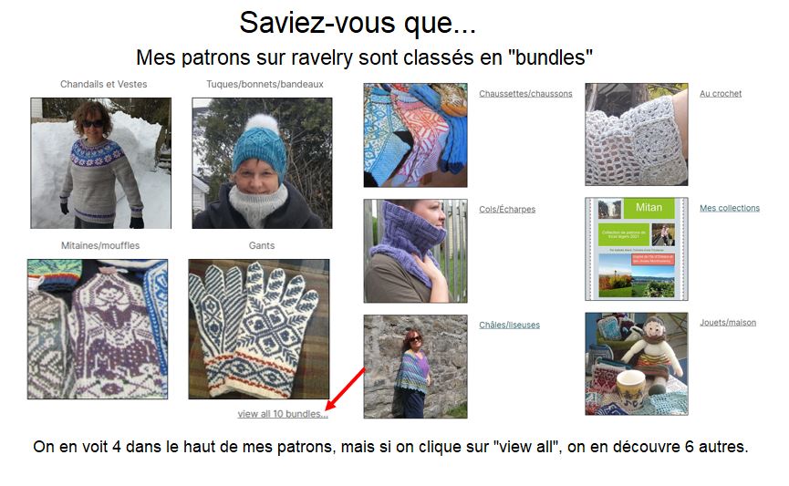 Et la nouveauté sur ma page facebook, à la place de la technique du mois, sera sur mes e-books ou collections. C’est une de mes particularités comme créatrice de patrons: j’ai fait plusieurs e-books (certains gratuits mais la plupart non) et en-dehors de ça, j’ai tendance à réutiliser des motifs que j’ai créé sur plusieurs tricots, même si ça reste en patrons individuels. Donc je mijote tout ça, mais en avril, c’est un retour sur Mitan, ma collection de mi-saison, que j’ai publié en 2021.