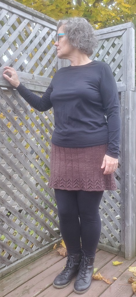 Je vous présente mon plus récent patron de tricot. Je l’appelle la jupe Denteline.