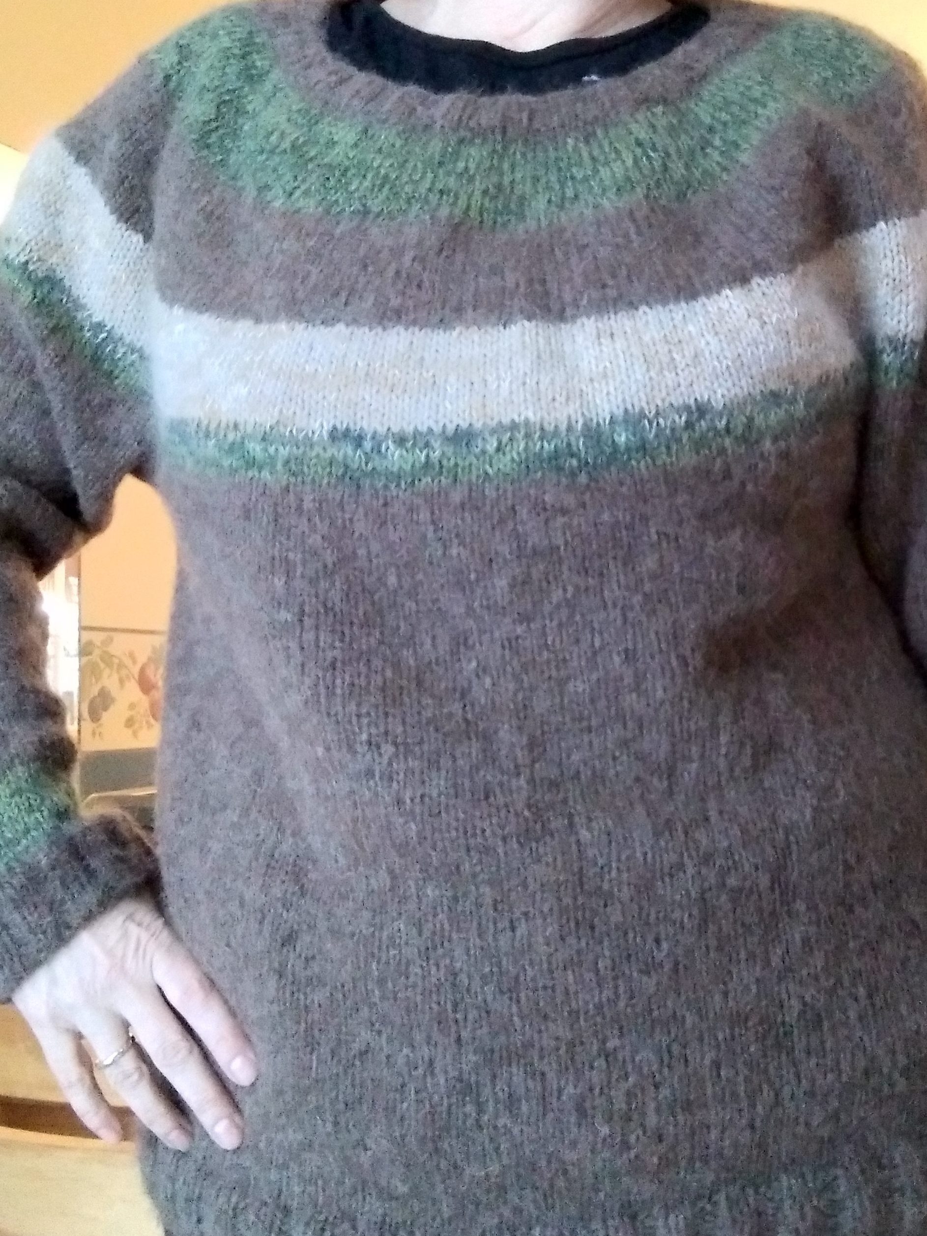 Le Paysan, c’est la méthode de chandail « Lopapeysa »,mais à partir du haut, et simplifiée au maximum.