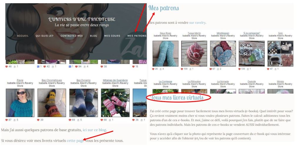 En fait, cette page ne se retrouve pas dans la barre à la page d’accueil mais se trouve à être une « sous-page » de la page sur mes patrons. Pour cette fois-ci, en cliquant sur cette image ici-bas (qui vous explique le chemin normal pour y accéder), et bien vous accéderez directement à cette page.