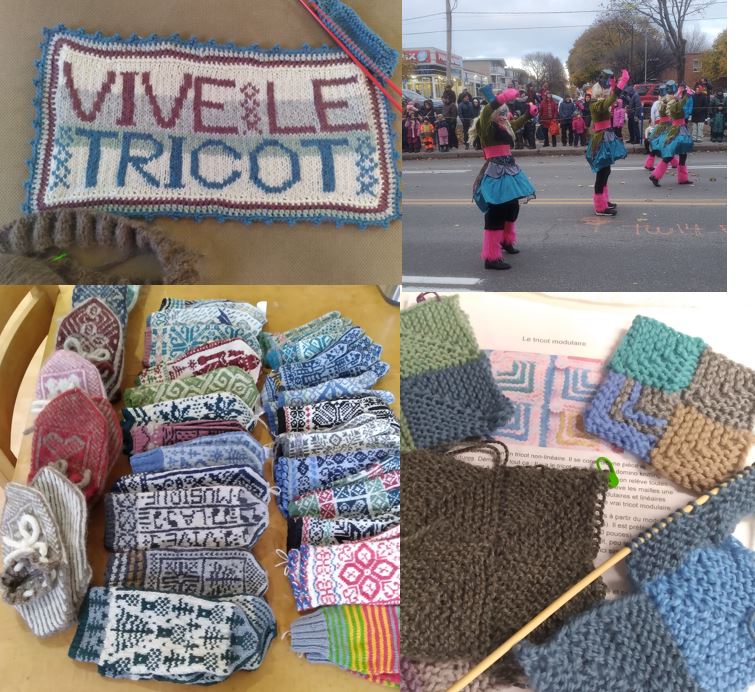 J’ai eu un dernier cours, le 1er novembre, au cercle des fermières de St-Appolinaire sur le tricot modulaire (ce sera un de mes thèmes de l’an prochain) et, 2 semaines plus tard, la parade des jouets à Québec avec la participation de ma grande petite-fille de 14 ans: L.