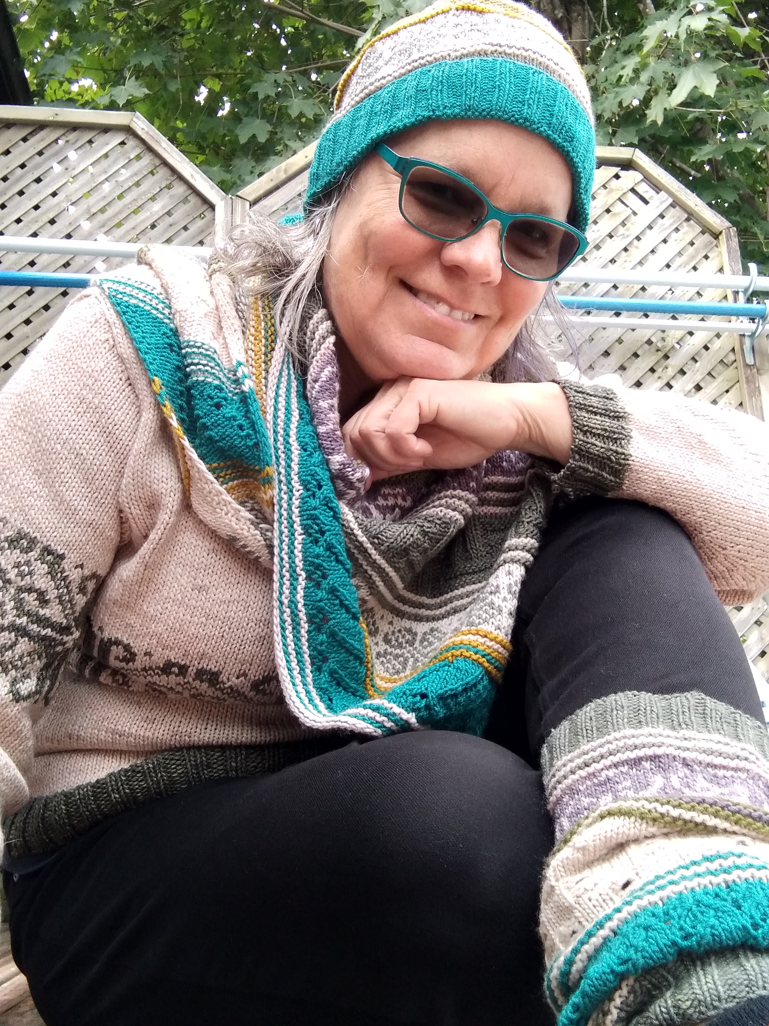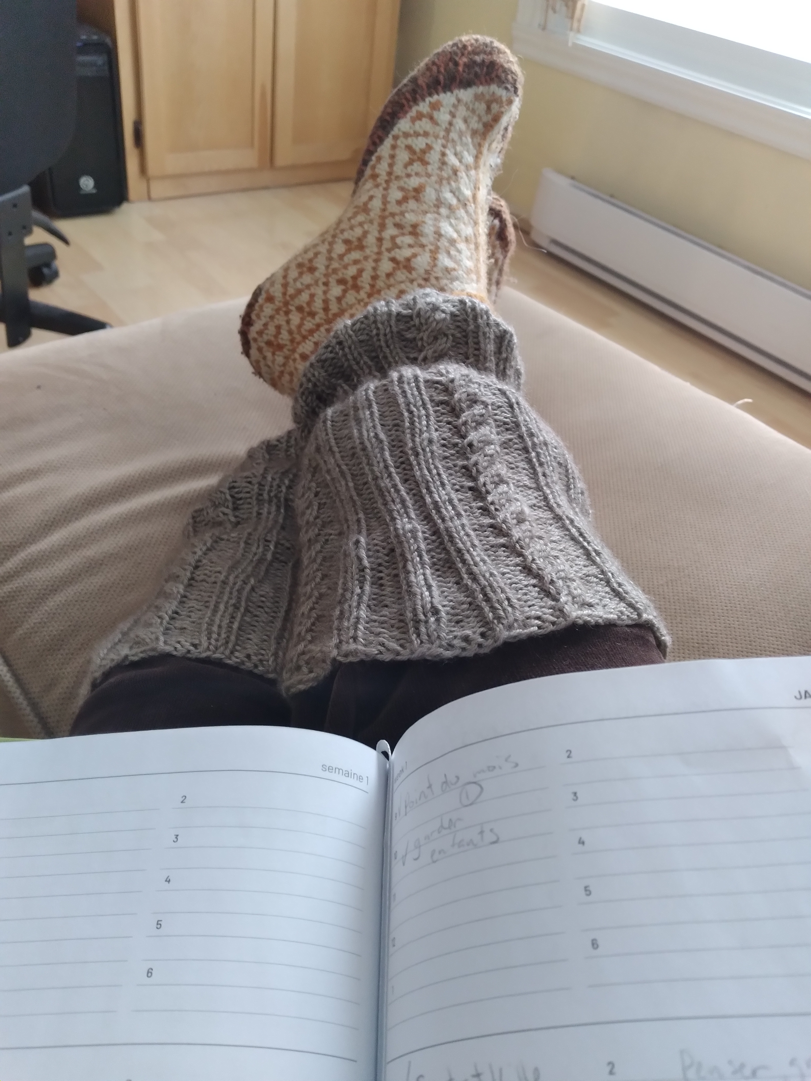 Il en est de même pour les tricots, ça ne parait pas tant que je tricote moins. Ne riez pas! C’est vrai! Il faut dire que j’y ai mis mes travaux ayant rapport au tricot, à mon travail de professeur de tricot. En fait, j’ai diminué pour pouvoir continuer encore.