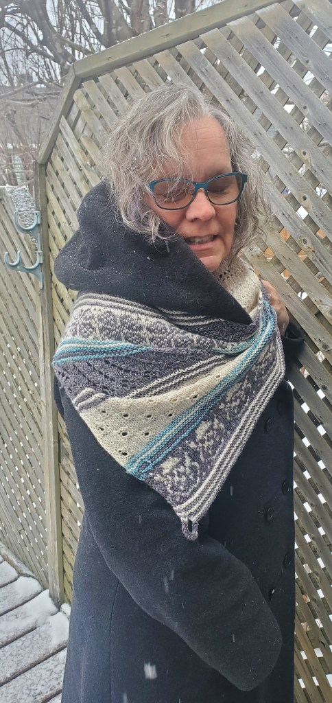 C’est qu’il y aura 2 autres patrons coordonnés à ce châle.